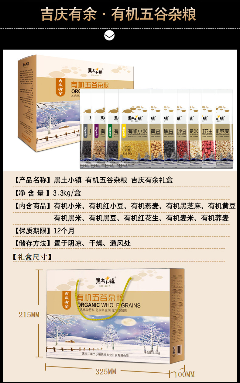 商品名称:黑土小镇吉庆有余有机杂粮礼盒3.3kg