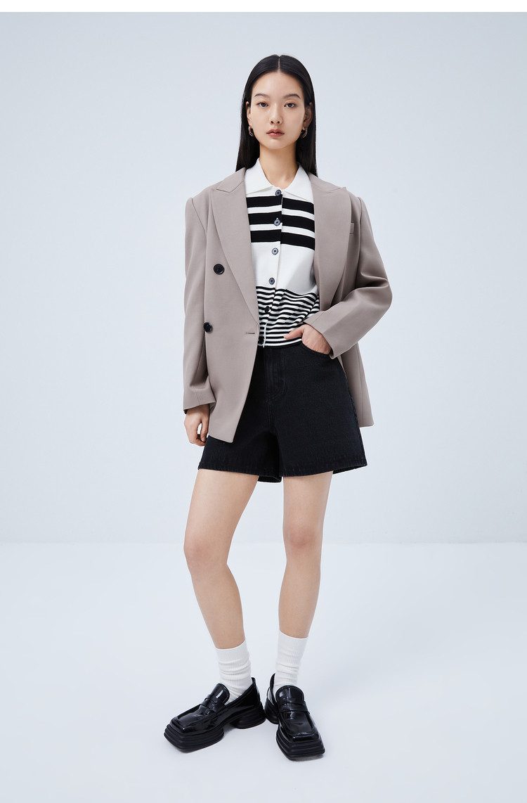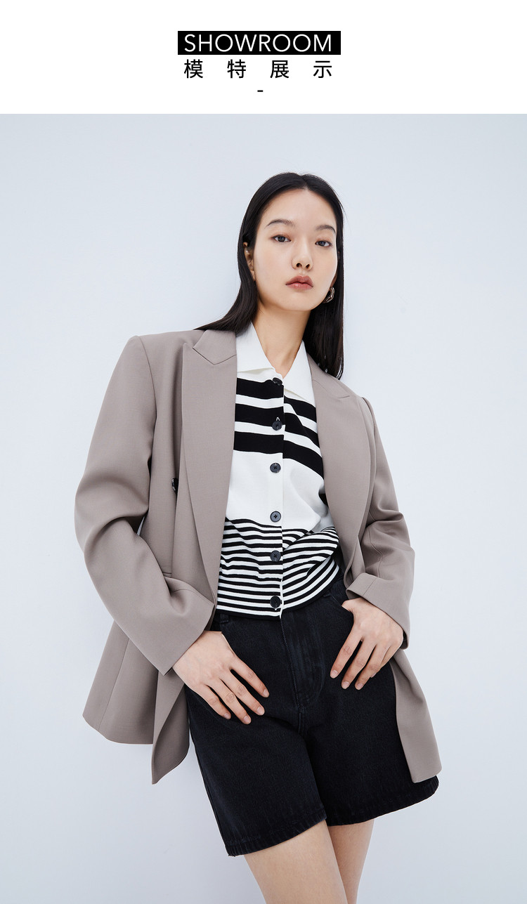 【商场同款】春季质纯色通勤款利落大气双排扣静奢西装外套 585563