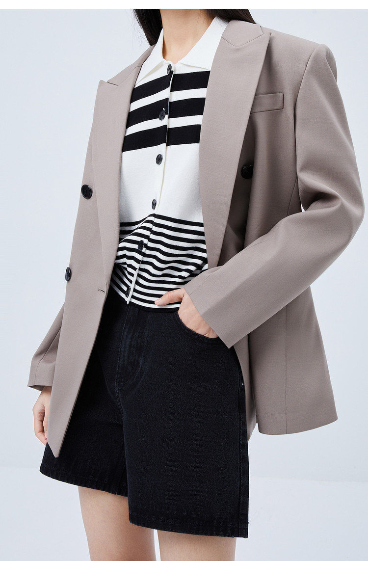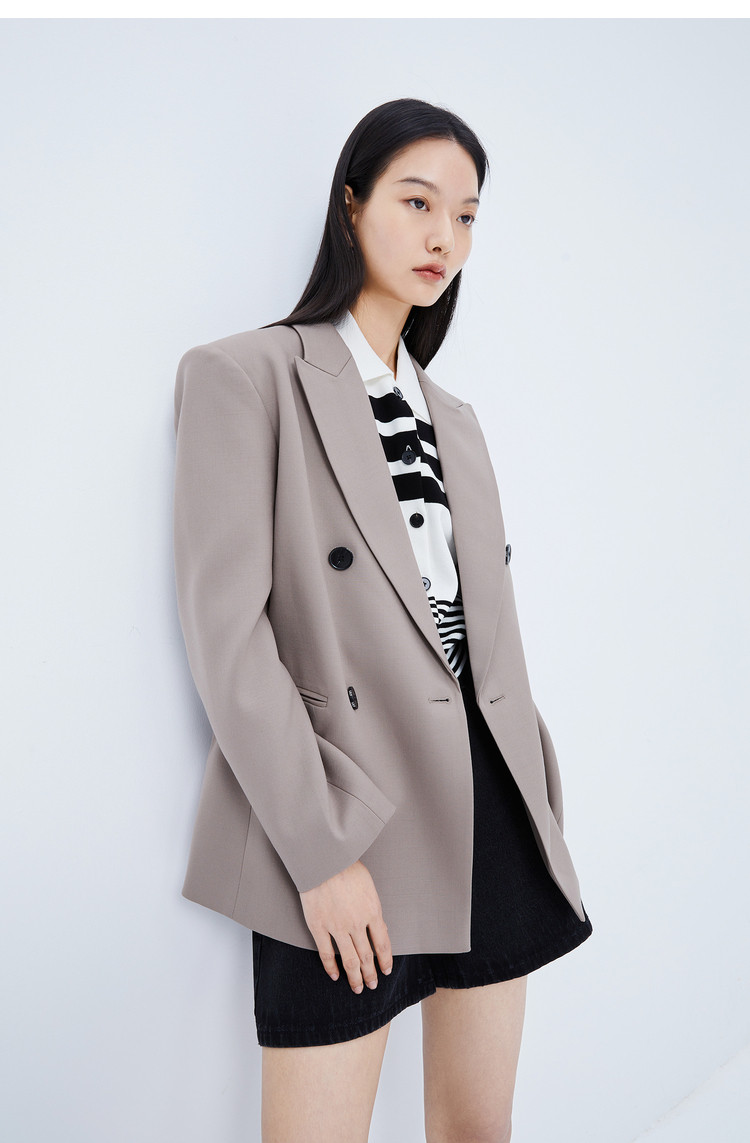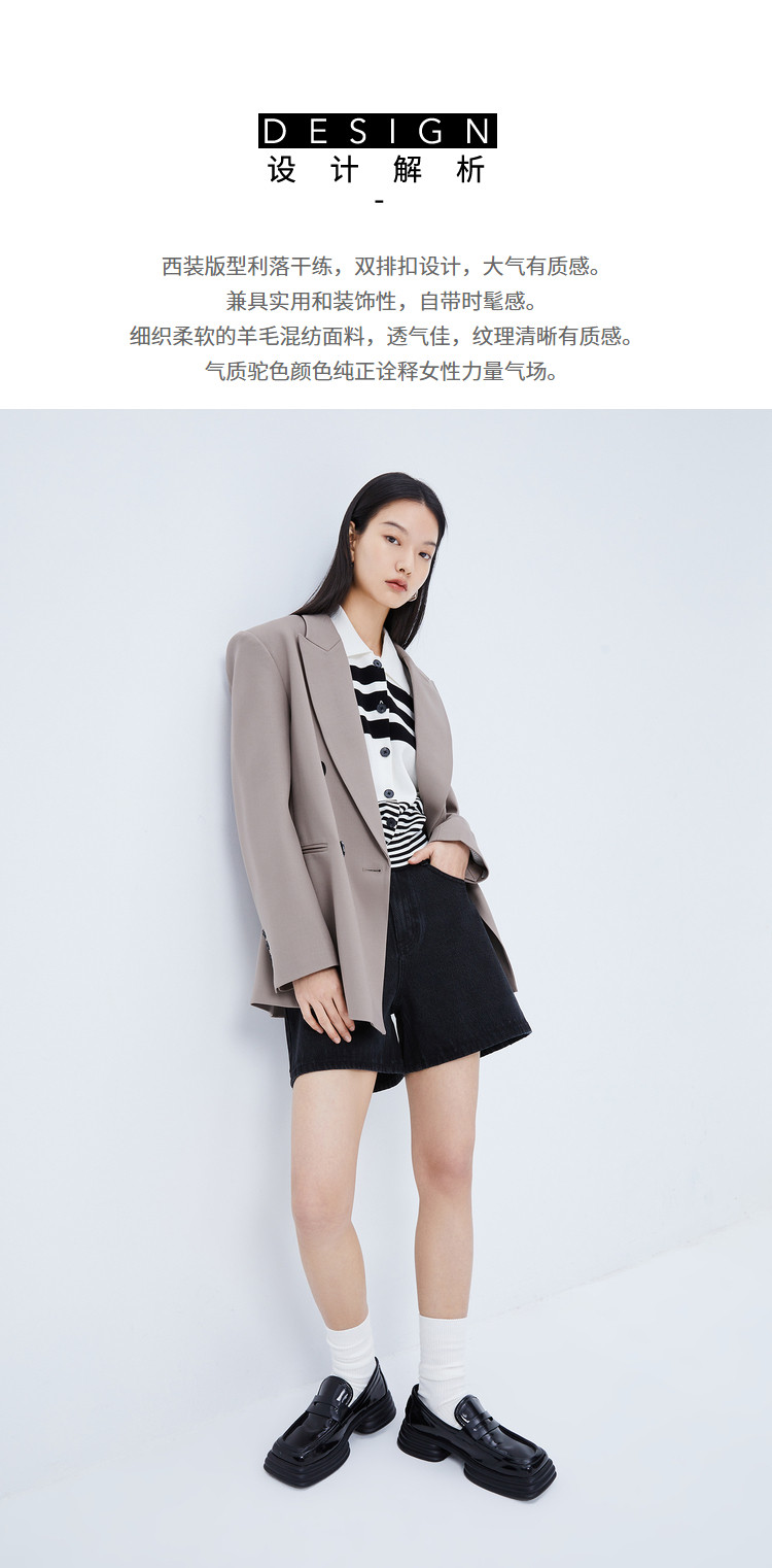 商品名称:【商场同款】春季质纯色通勤款利落大气双排扣静奢西装外套 585563