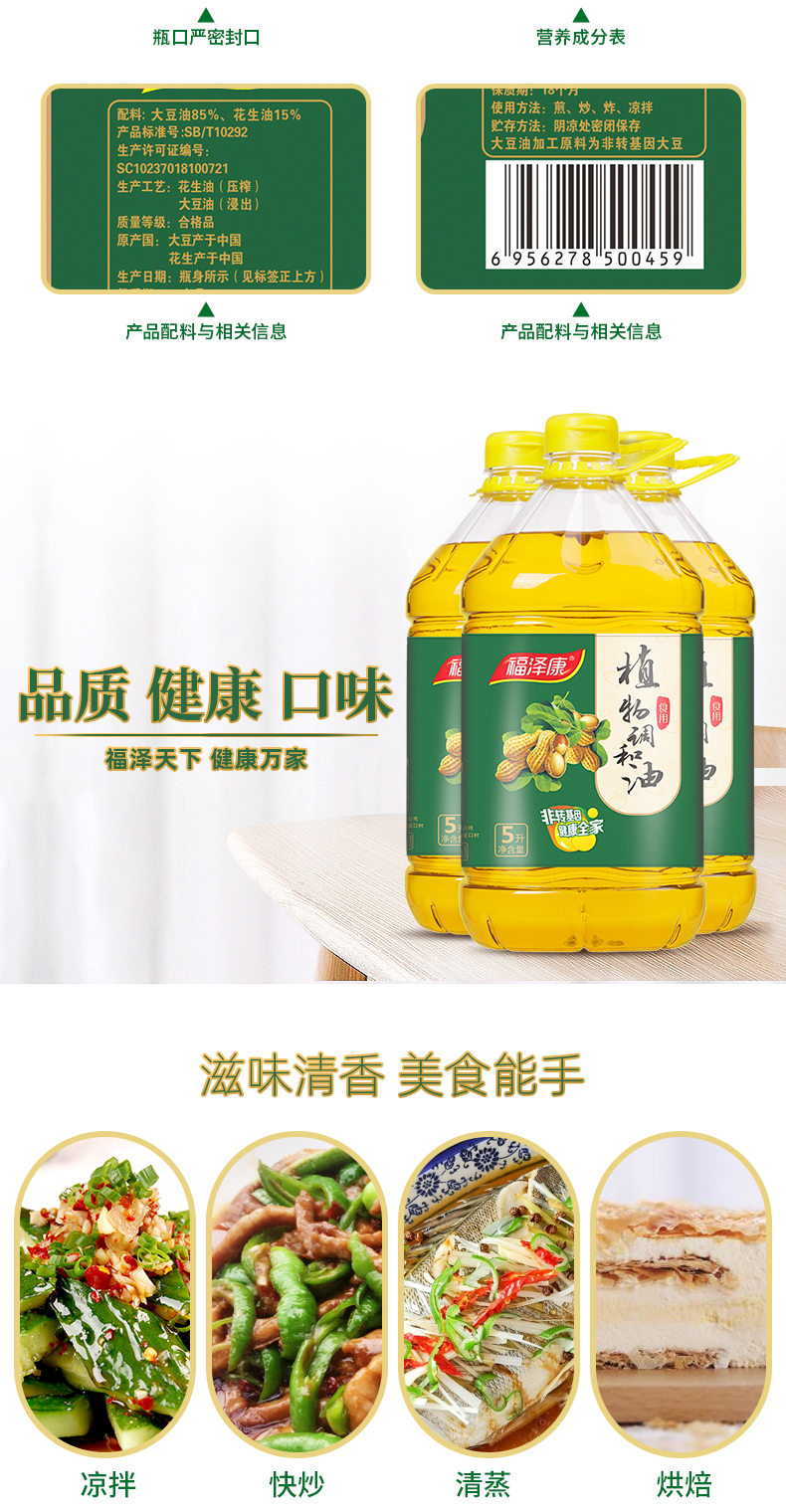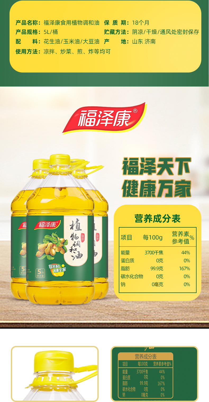 商品名称:福泽康非转基因植物调和油5L