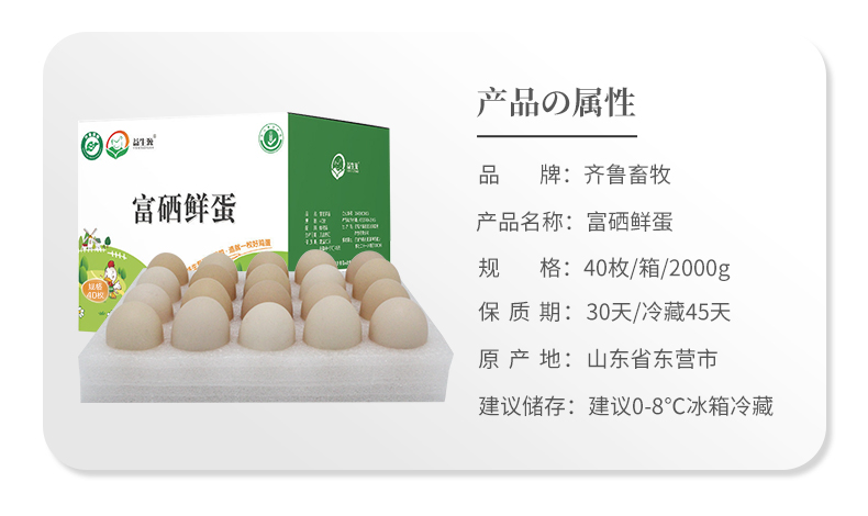 商品名称:【顺丰配送】齐鲁畜牧富硒鲜鸡蛋40枚约2000g