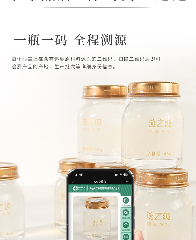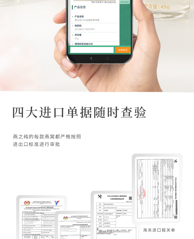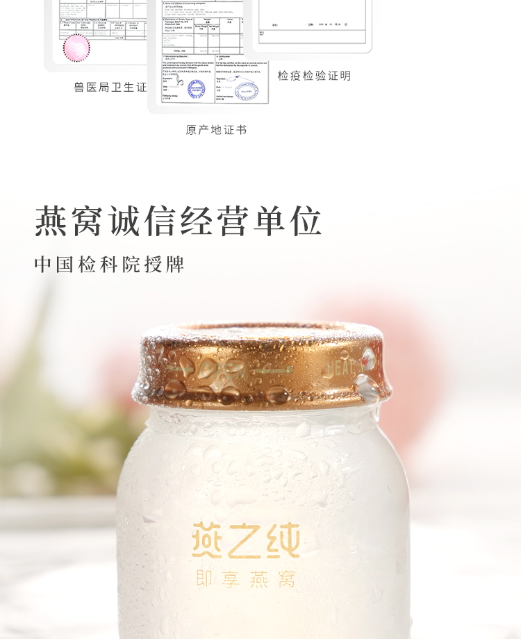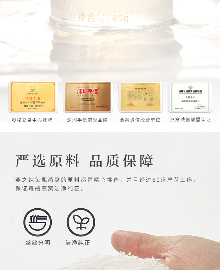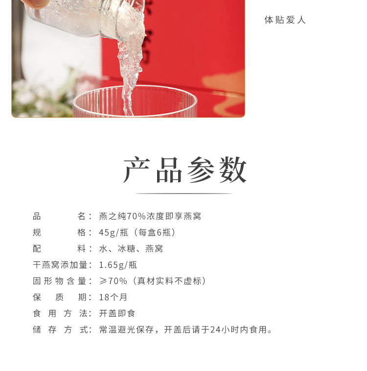 商品名称:燕之纯70%浓度即享燕窝礼盒45g*6瓶