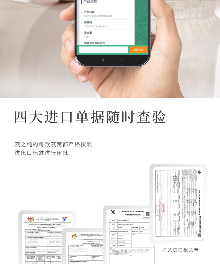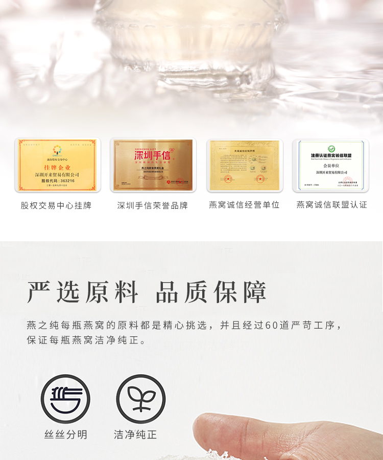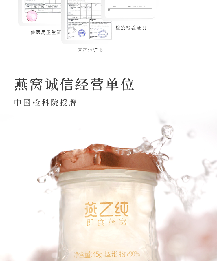 商品名称:燕之纯90%浓度即享燕窝礼盒45g*6瓶