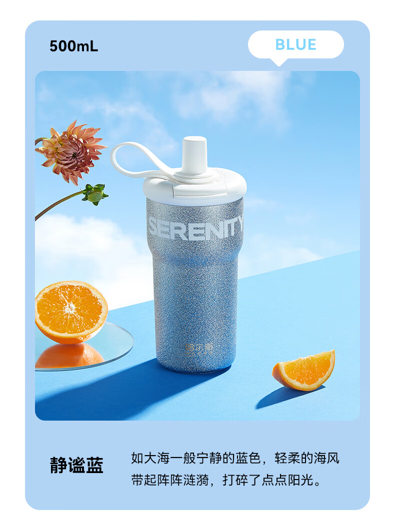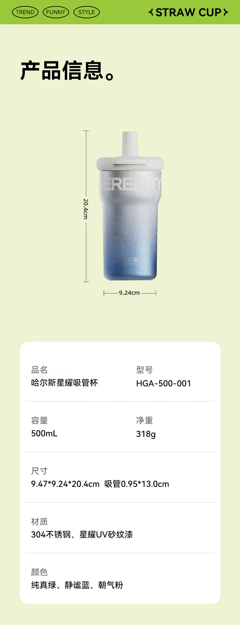 商品名称:HAERS/哈尔斯500毫升星耀吸管保温杯HGA-500-001