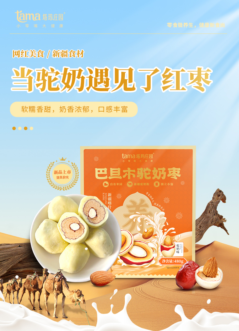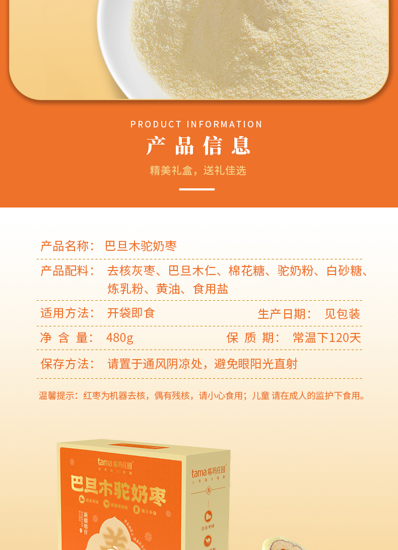 商品名称:塔玛庄园巴旦木驼奶枣480g