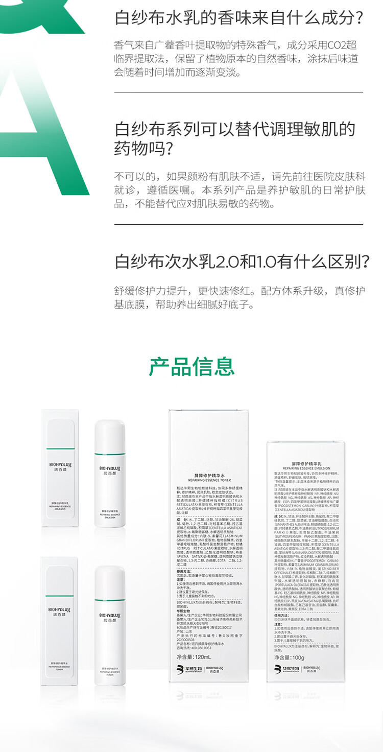 BIOHYALUX/润百颜白纱布玻尿酸屏障调理护肤品