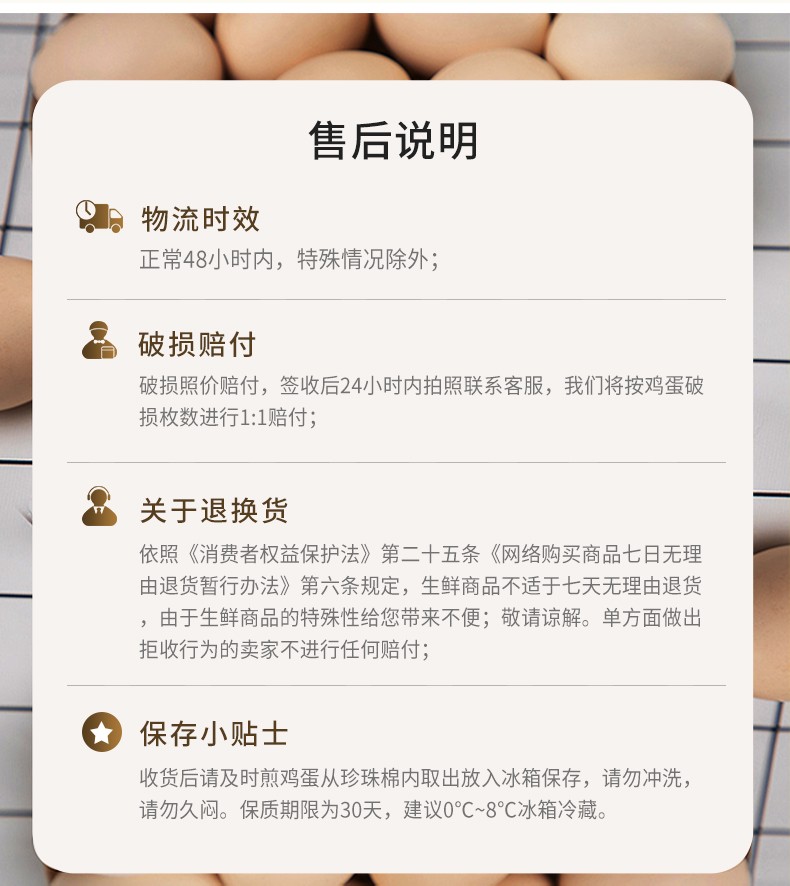 商品名称:【顺丰配送】齐鲁畜牧可生食富硒鲜鸡蛋30枚约1500g