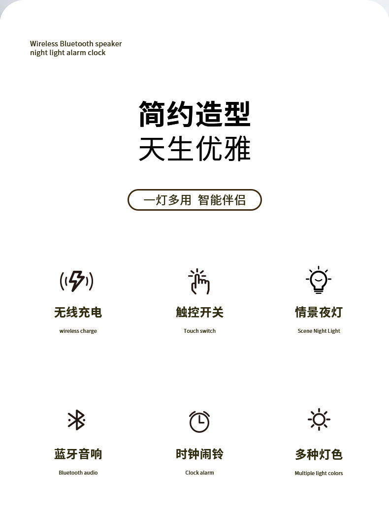 商品名称:Choworld/超维无线充蓝牙音箱夜灯闹钟CW602