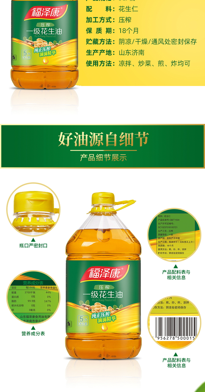 商品名称:福泽康花生油5L