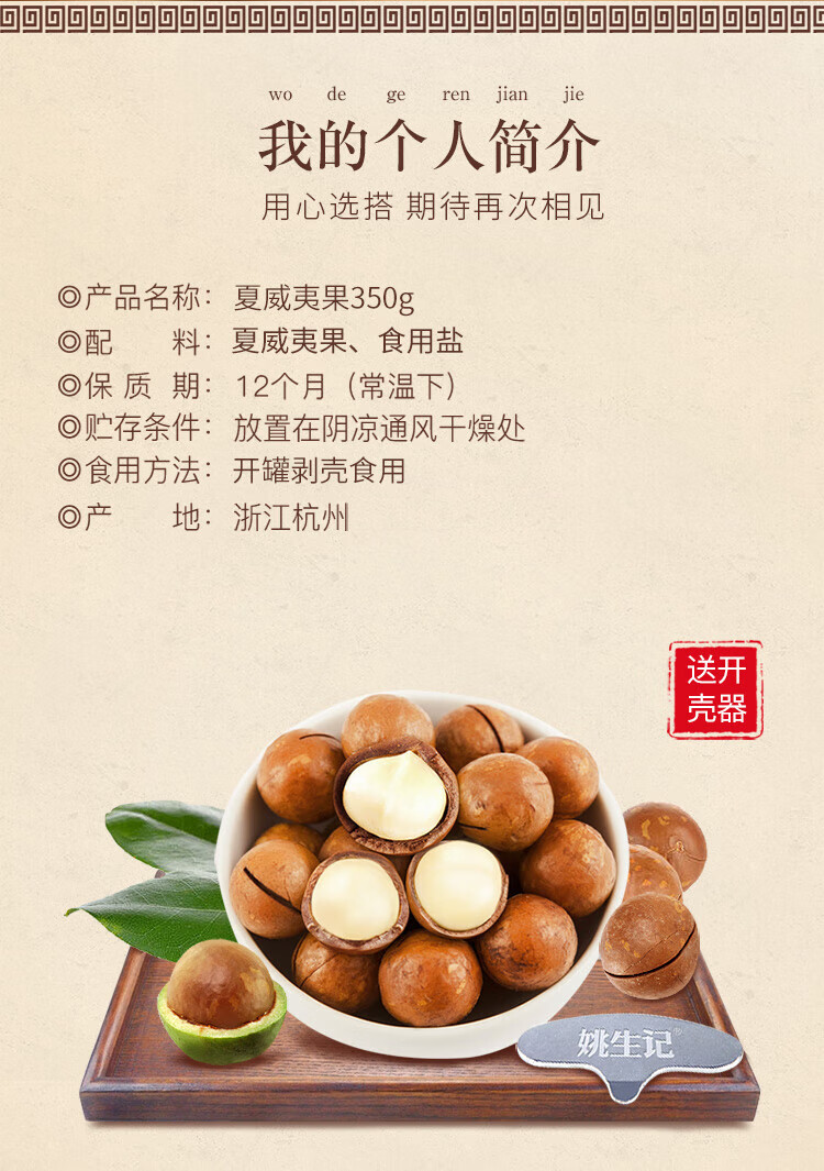 商品名称:姚生记夏威夷果350g