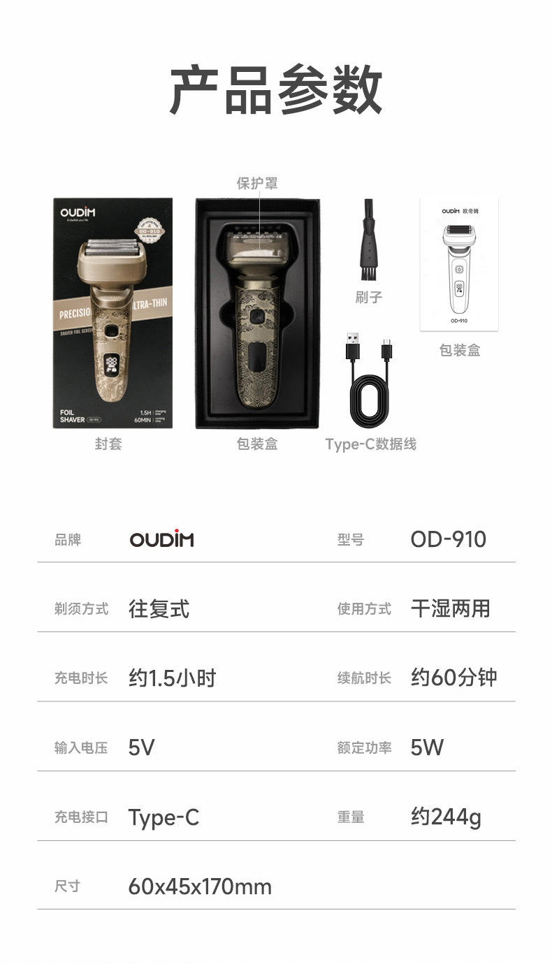 商品名称:OUDiM/欧帝姆往复式电动剃须刀0D-910