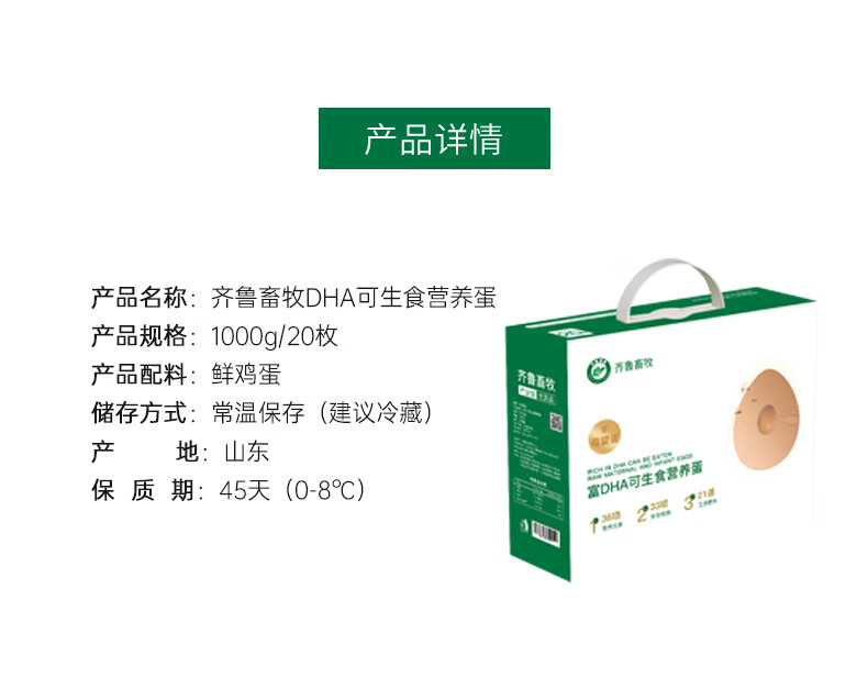 商品名称:【顺丰配送】齐鲁DHA可生食鲜鸡蛋20枚约1000g