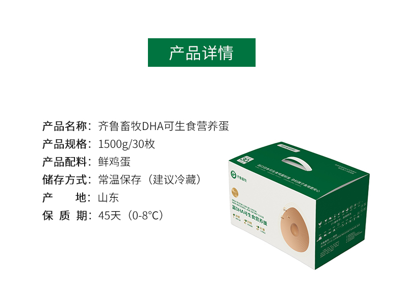 商品名称:【顺丰配送】齐鲁畜牧DHA可生食营养鸡蛋30枚约1500g