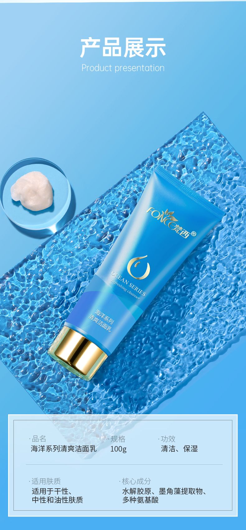 商品名称:Fonce/梵西海洋系列氨基酸清爽洁面乳100g