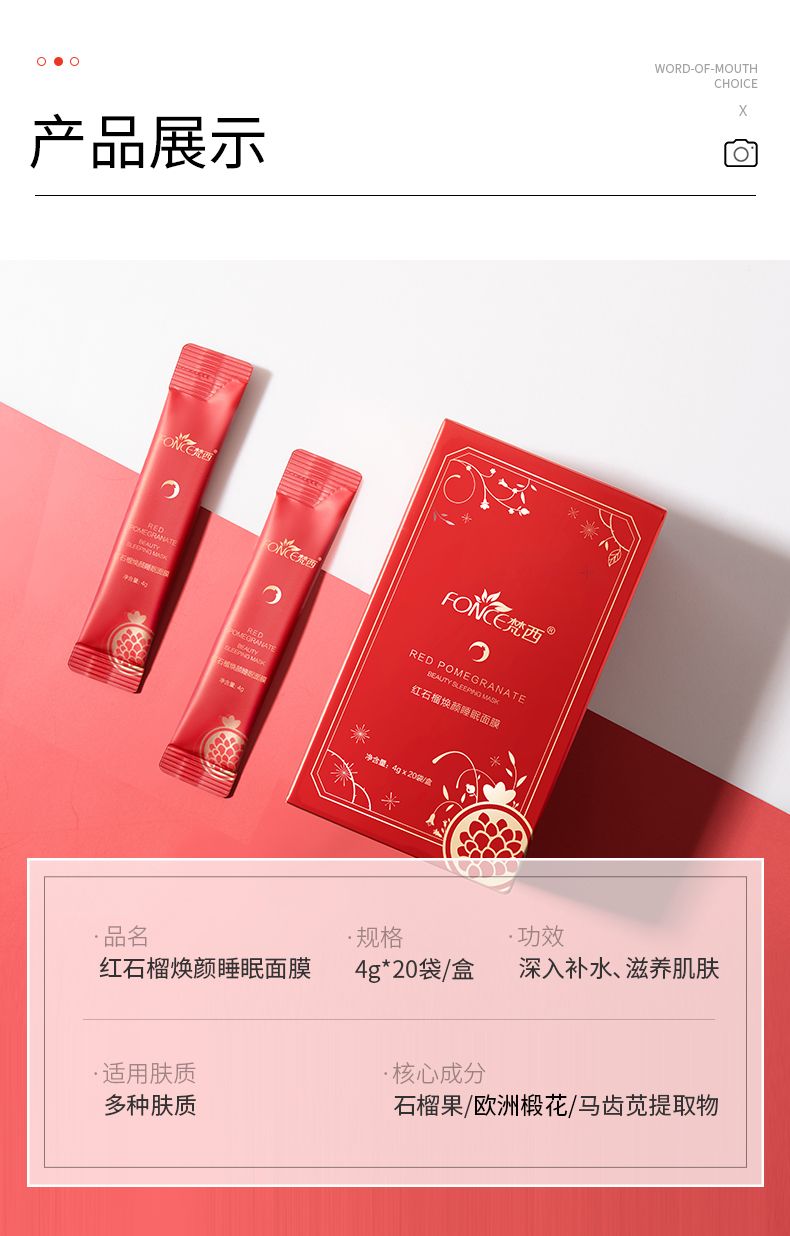 商品名称:FONCE/梵西红石榴焕颜睡眠面膜