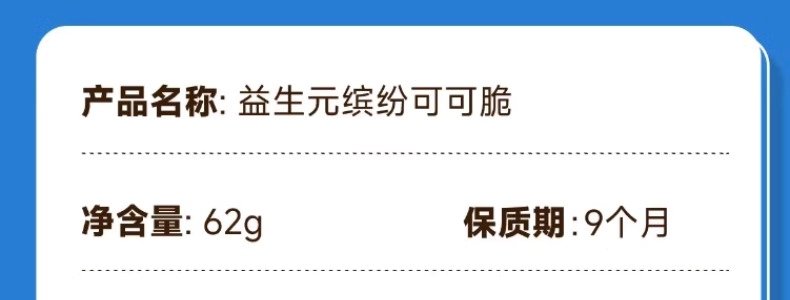 商品名称:小鹿蓝蓝 益生元巧克力缤纷可可脆 62g/盒
