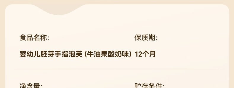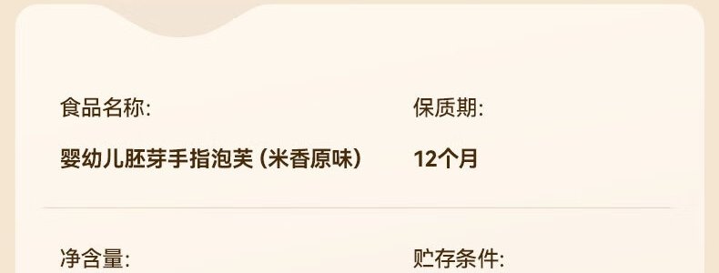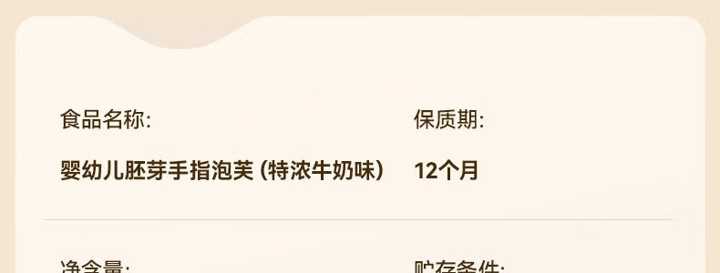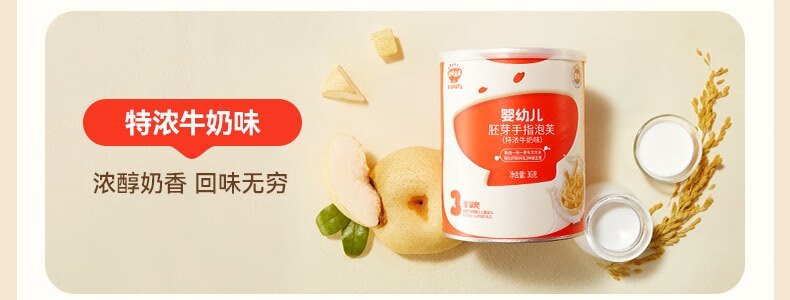 商品名称:秋田满满 婴幼儿胚芽手指泡芙(特浓牛奶味)36g