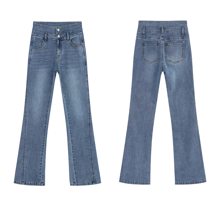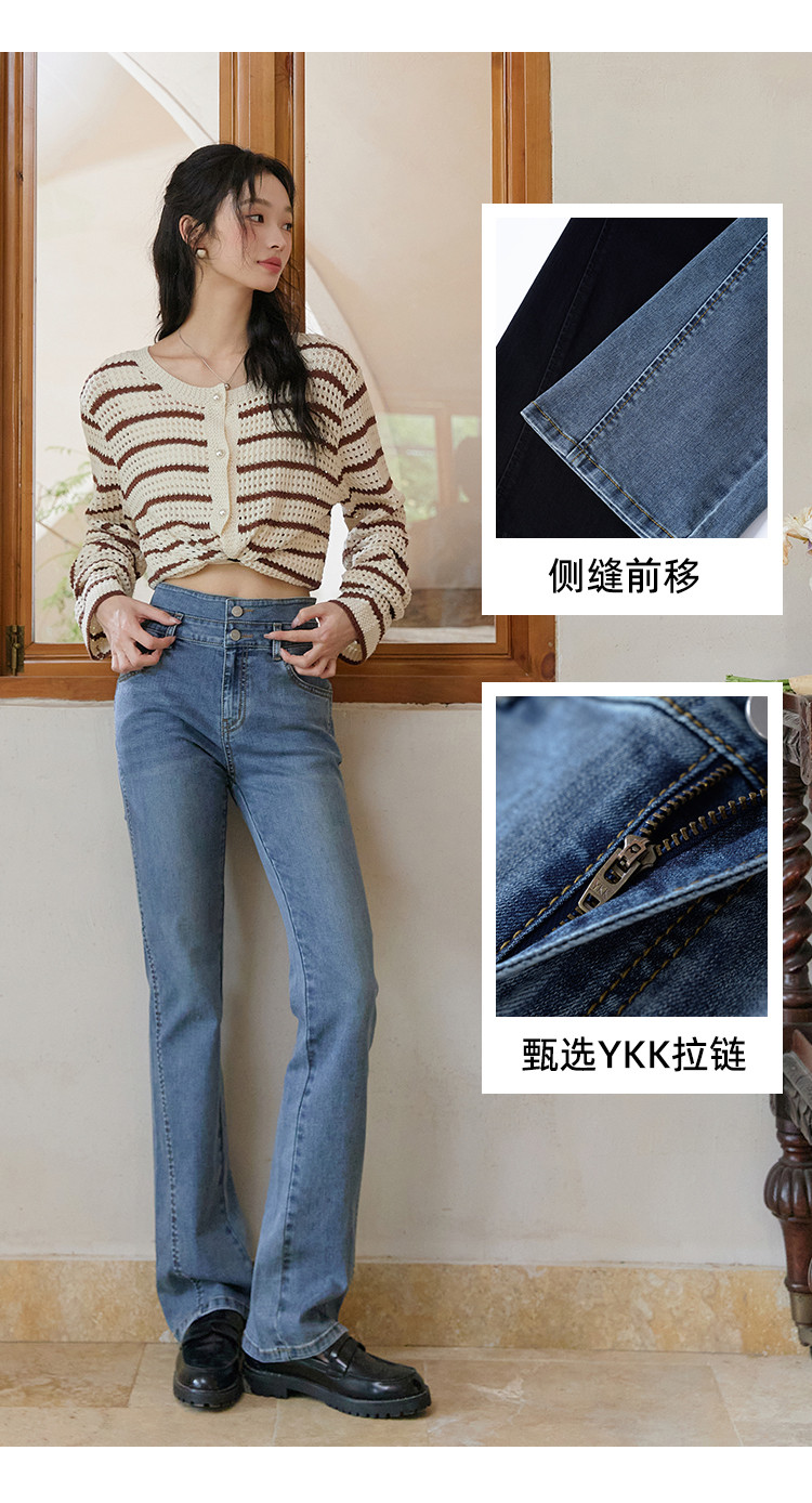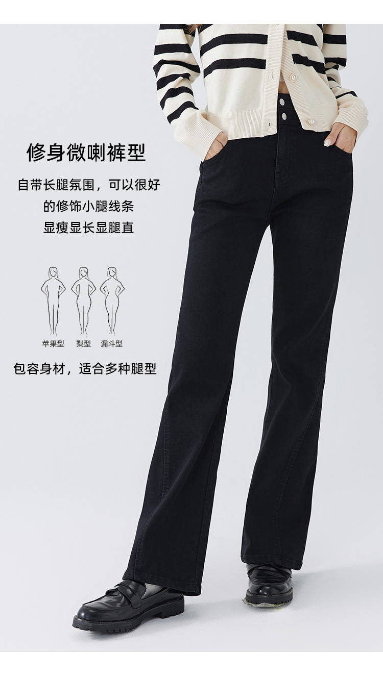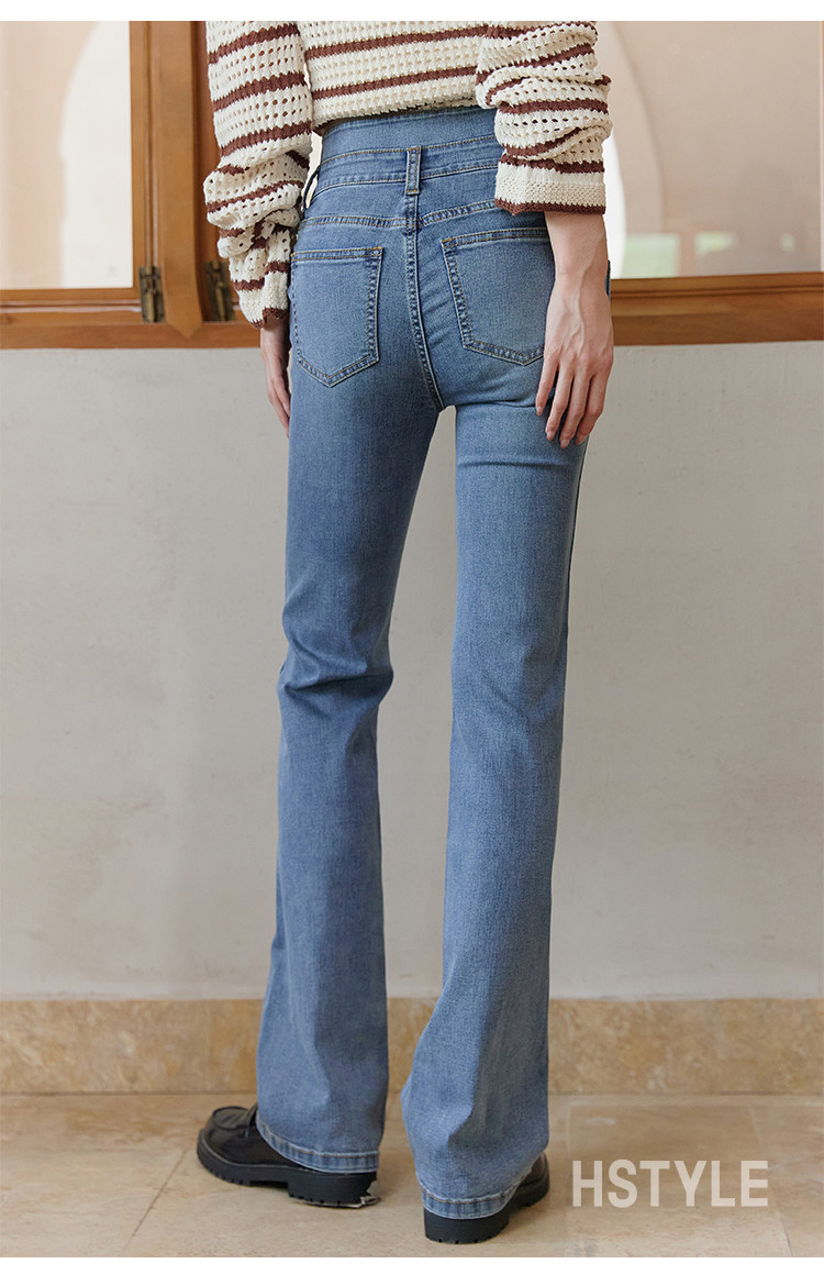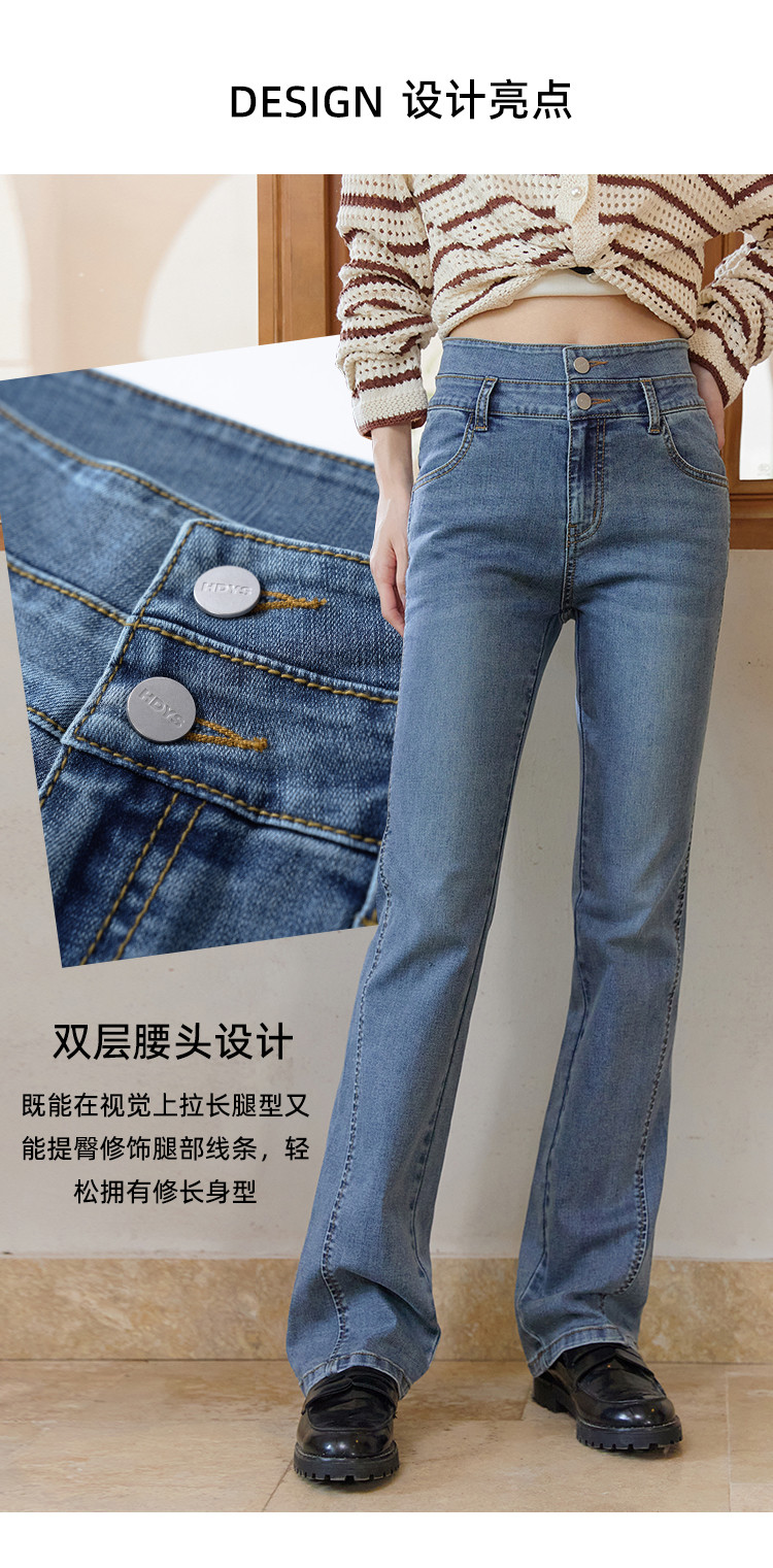 【高弹微喇牛仔裤】秋季款简约水洗口袋女微喇牛仔裤 362763