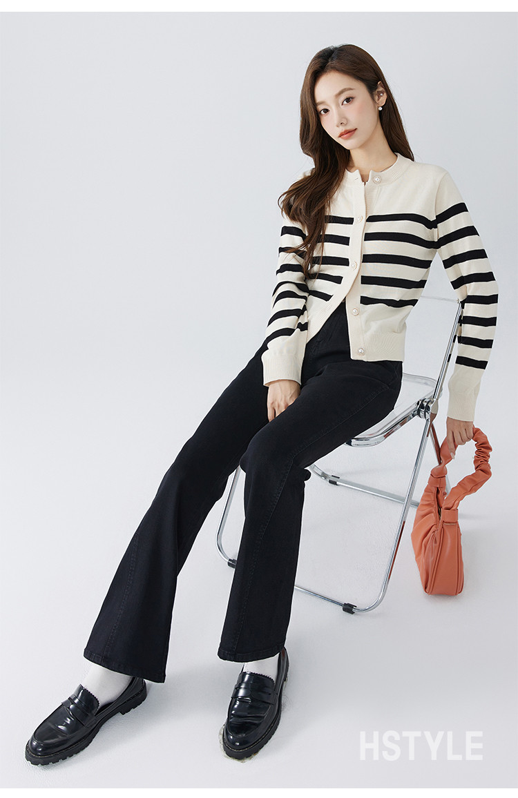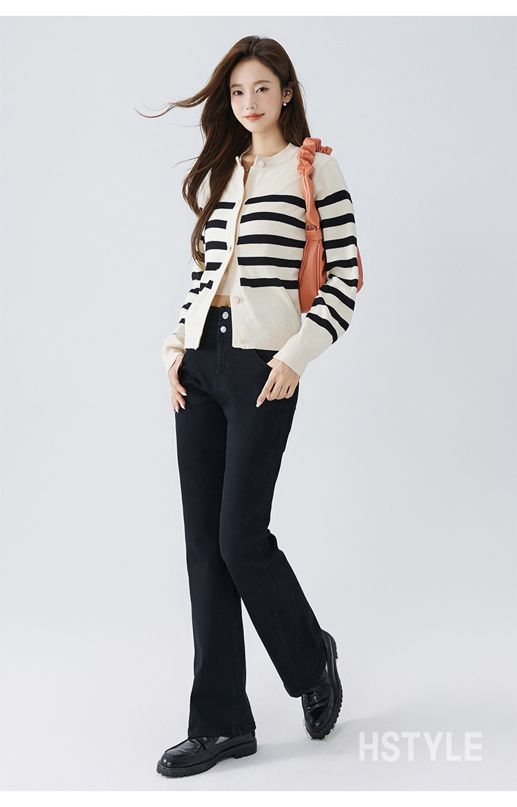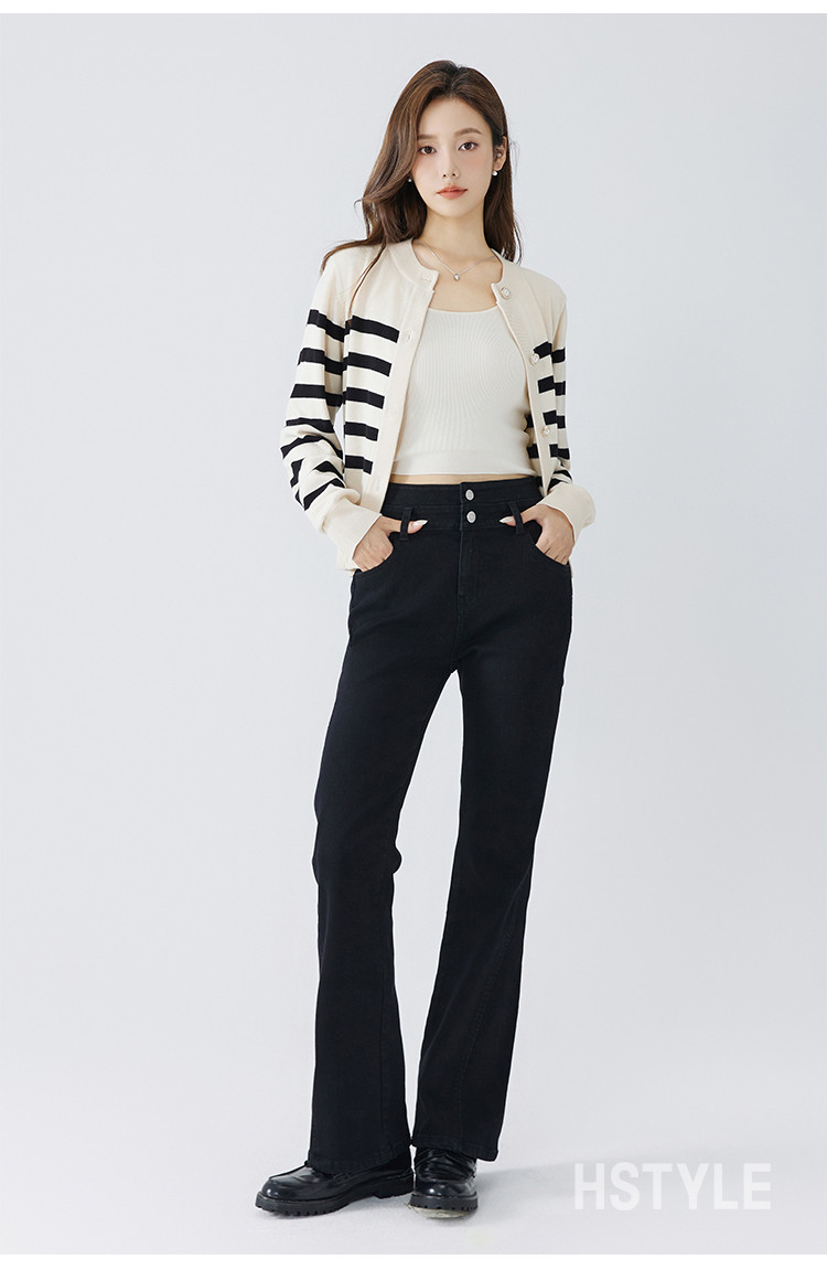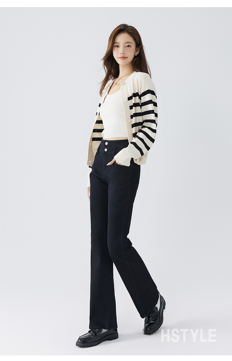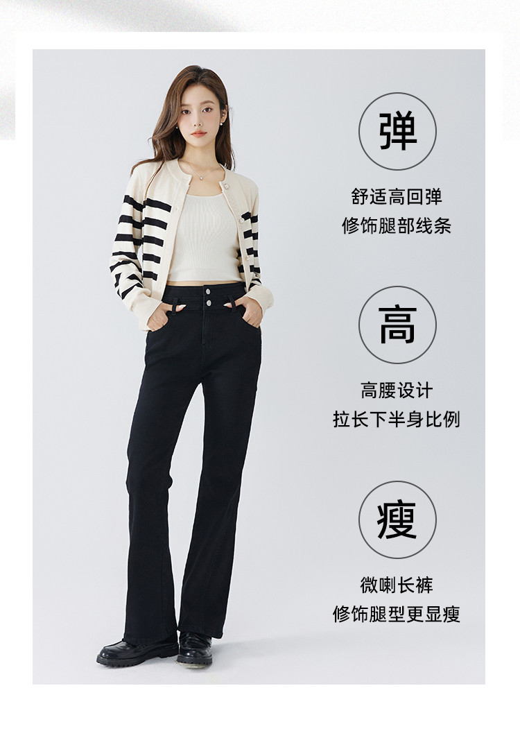 【高弹微喇牛仔裤】秋季款简约水洗口袋女微喇牛仔裤 362763