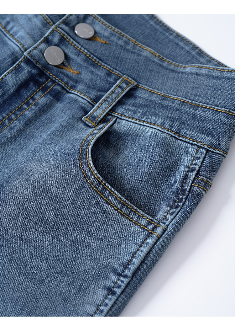 商品名称:【高弹微喇牛仔裤】秋季款简约水洗口袋女微喇牛仔裤 362763