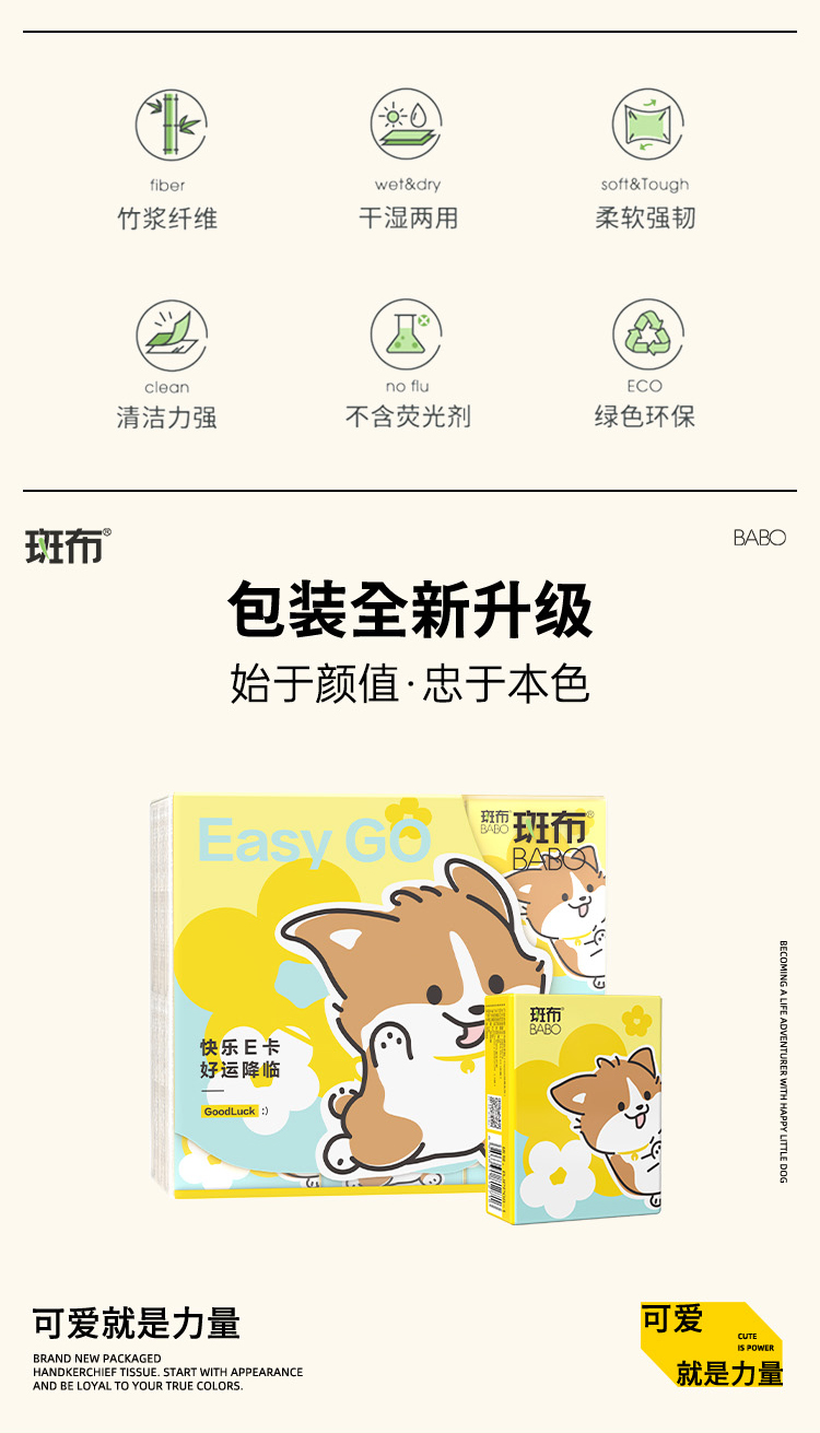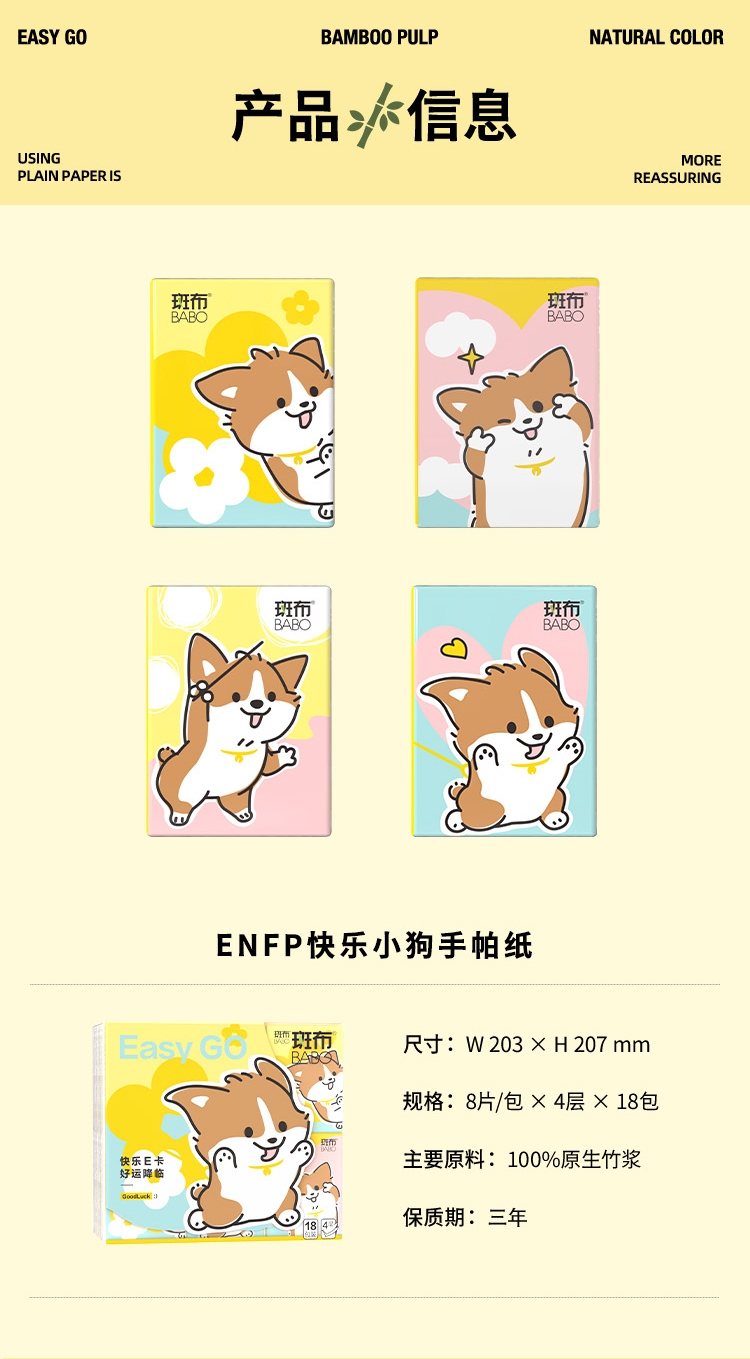 商品名称:BABO/斑布Classic经典系列快乐E卡牌手帕纸4层8片*18包BJPP08432-1-T