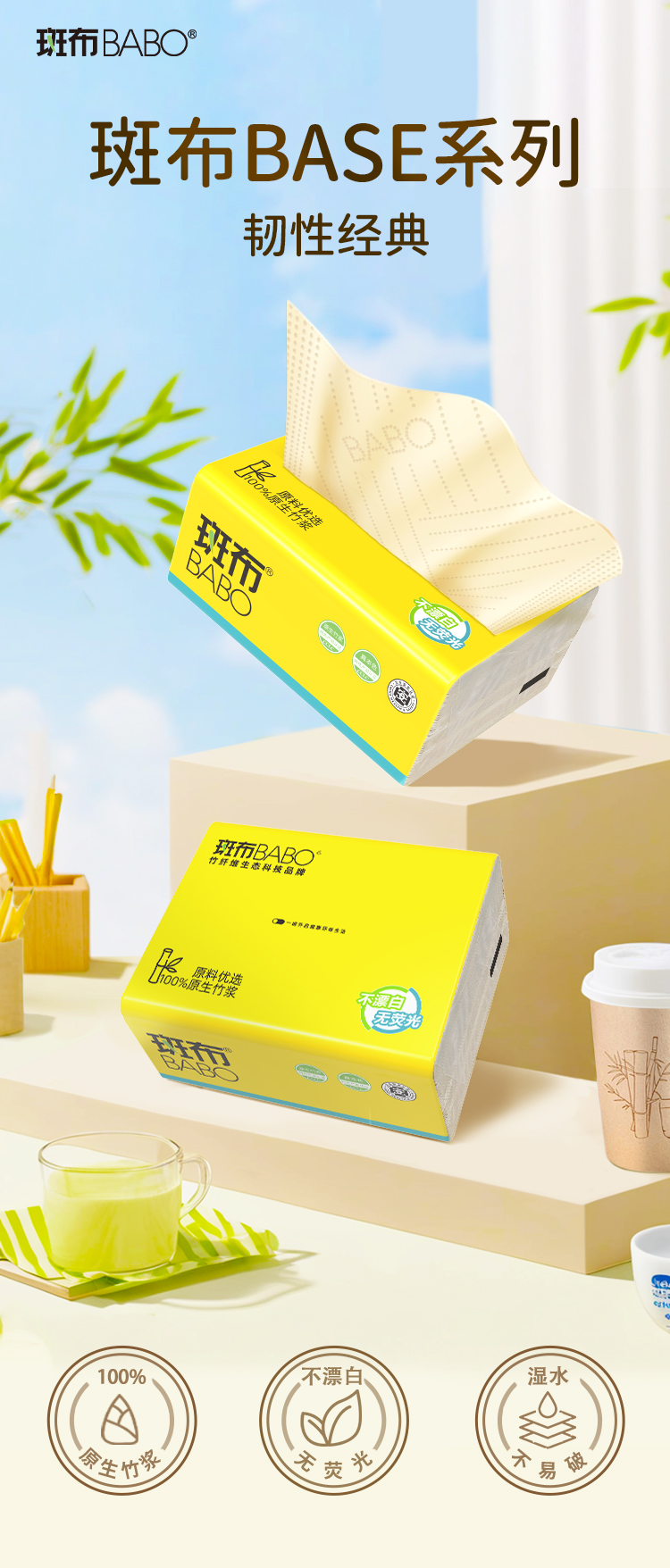 BABO/斑布BASE系列面巾纸整箱3层100抽*18包DBCR100E18-X 新老包装随机不接受指定