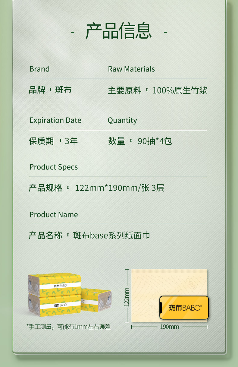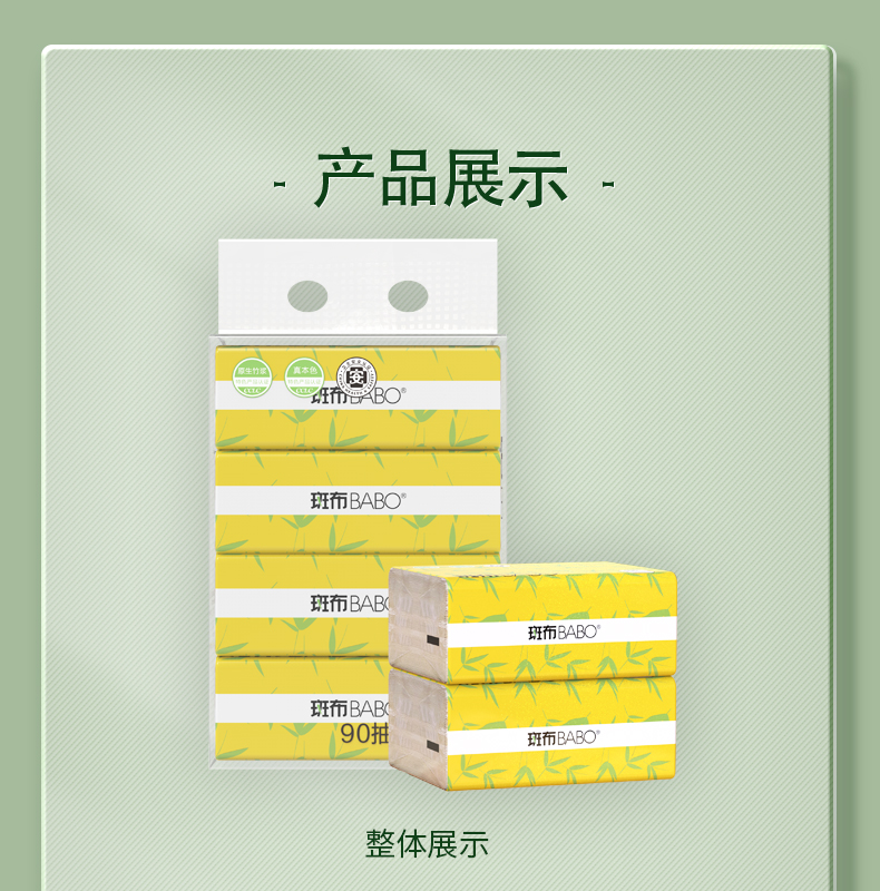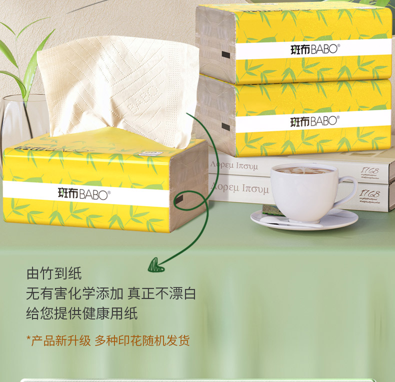 商品名称:BABO/斑布BASE系列纸面巾3层90抽*4包BSR90E4-T