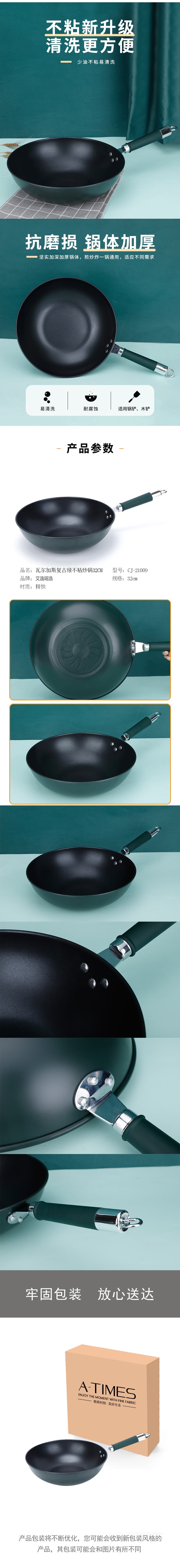 商品名称:艾逸瑶选32cm瓦尔加斯复古绿不粘炒锅CJ-21009