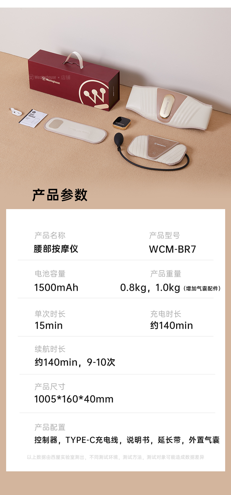 商品名称:Westinghouse/西屋腰部按摩器WCM-BR7