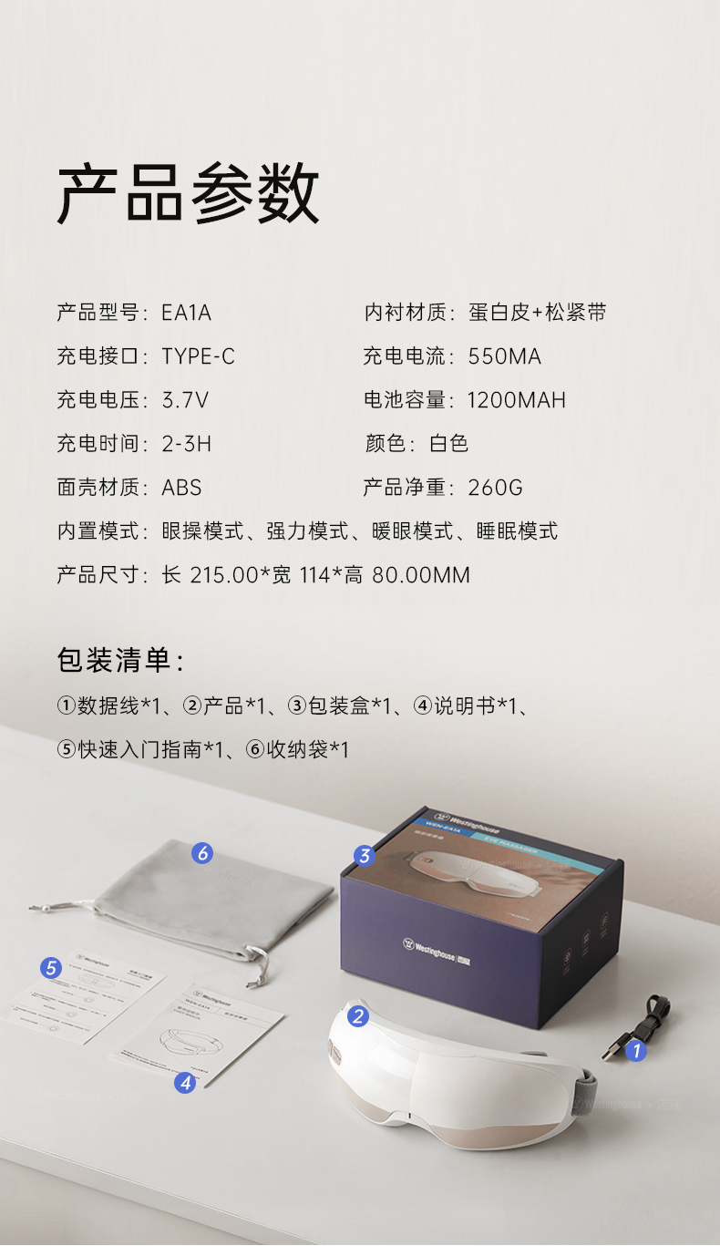 商品名称:Westinghouse/西屋眼部按摩器WEN-EA1A