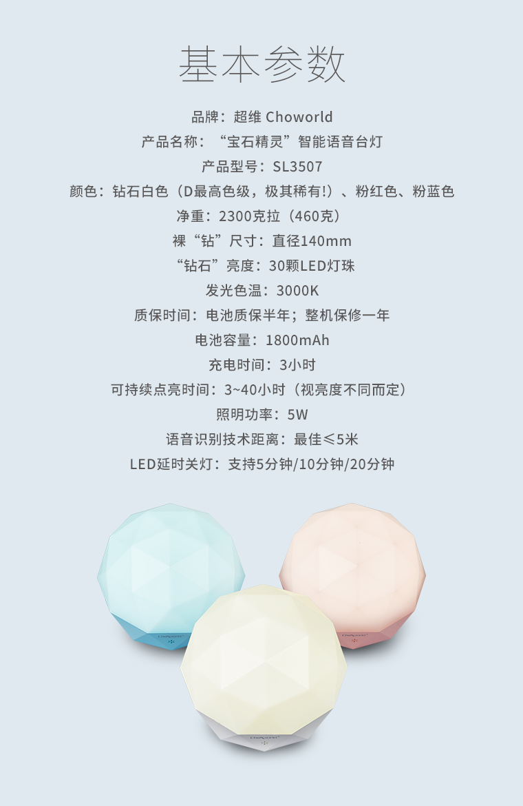 商品名称:Choworld/超维宝石精灵智能语音台灯SL3507