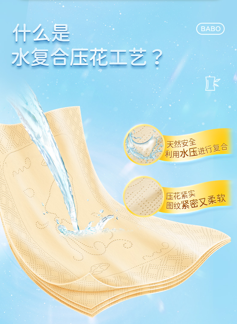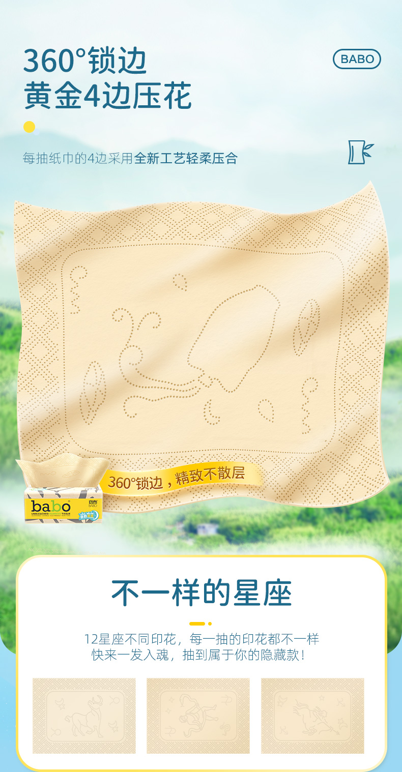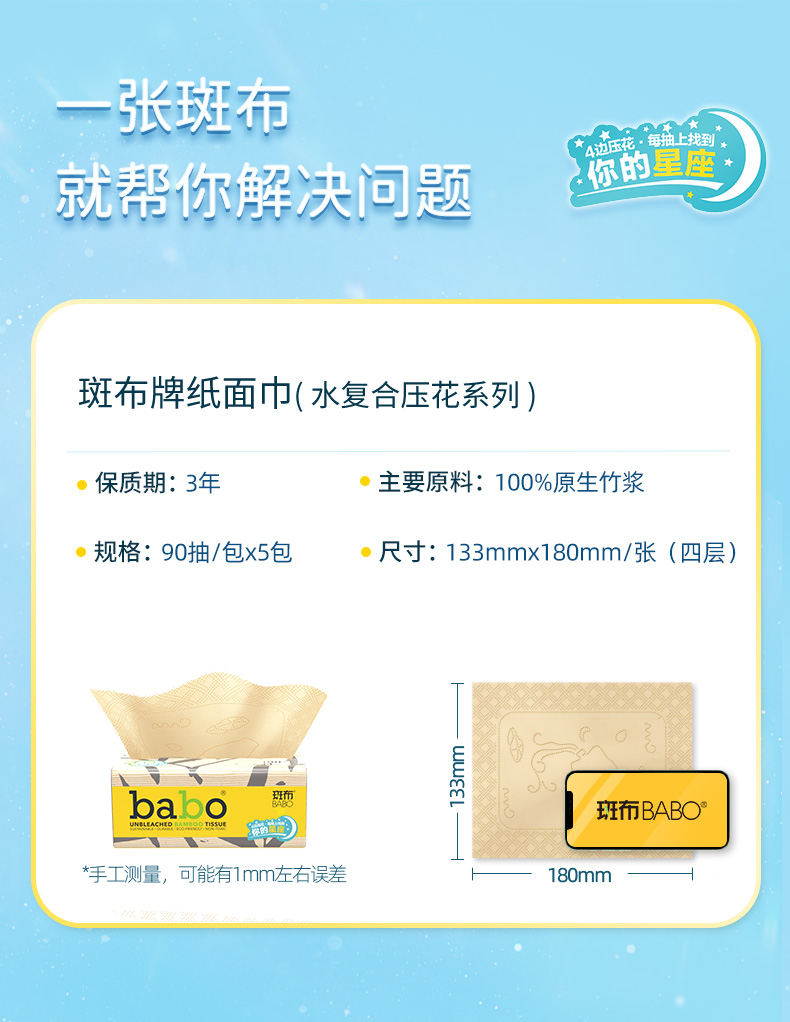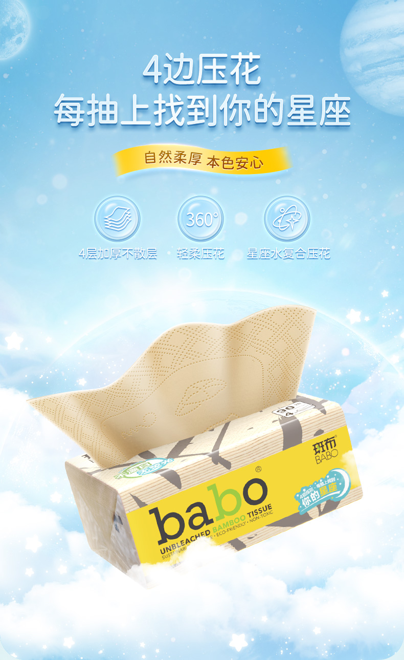 商品名称:BABO/斑布水复合压花系列面巾纸4层90抽*5包DBWR90F5-T