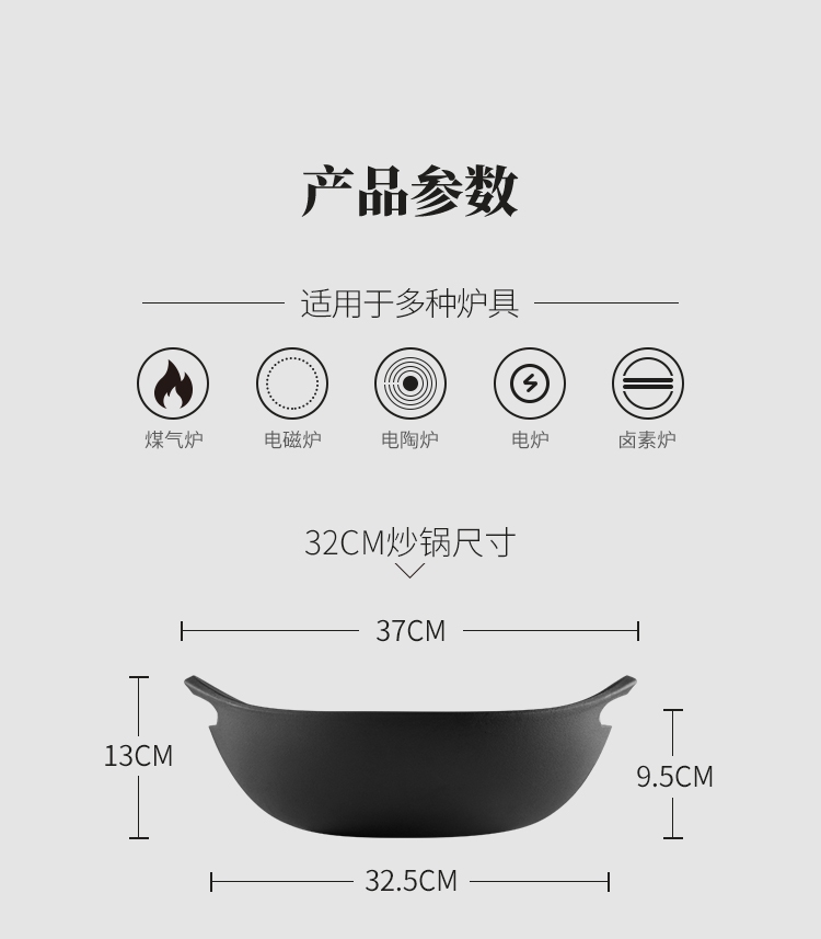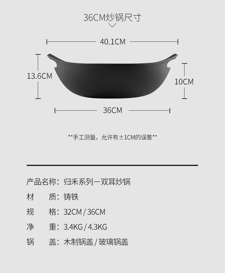 商品名称:归禾器归禾系列铸铁双耳炒锅