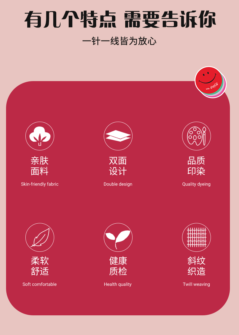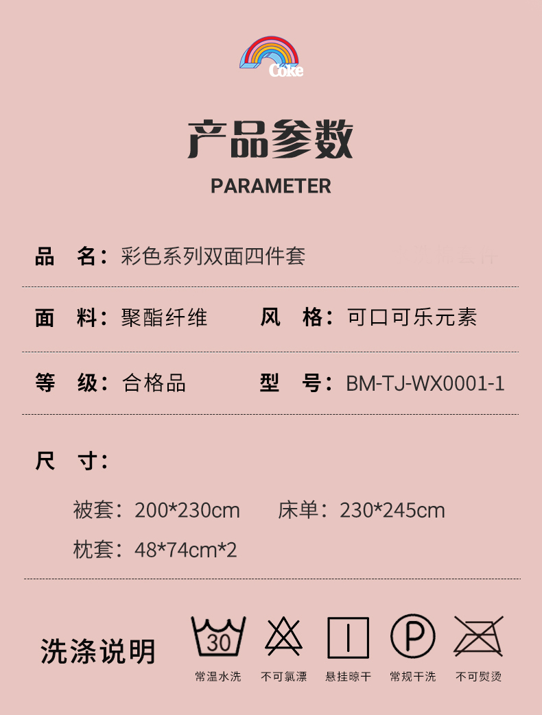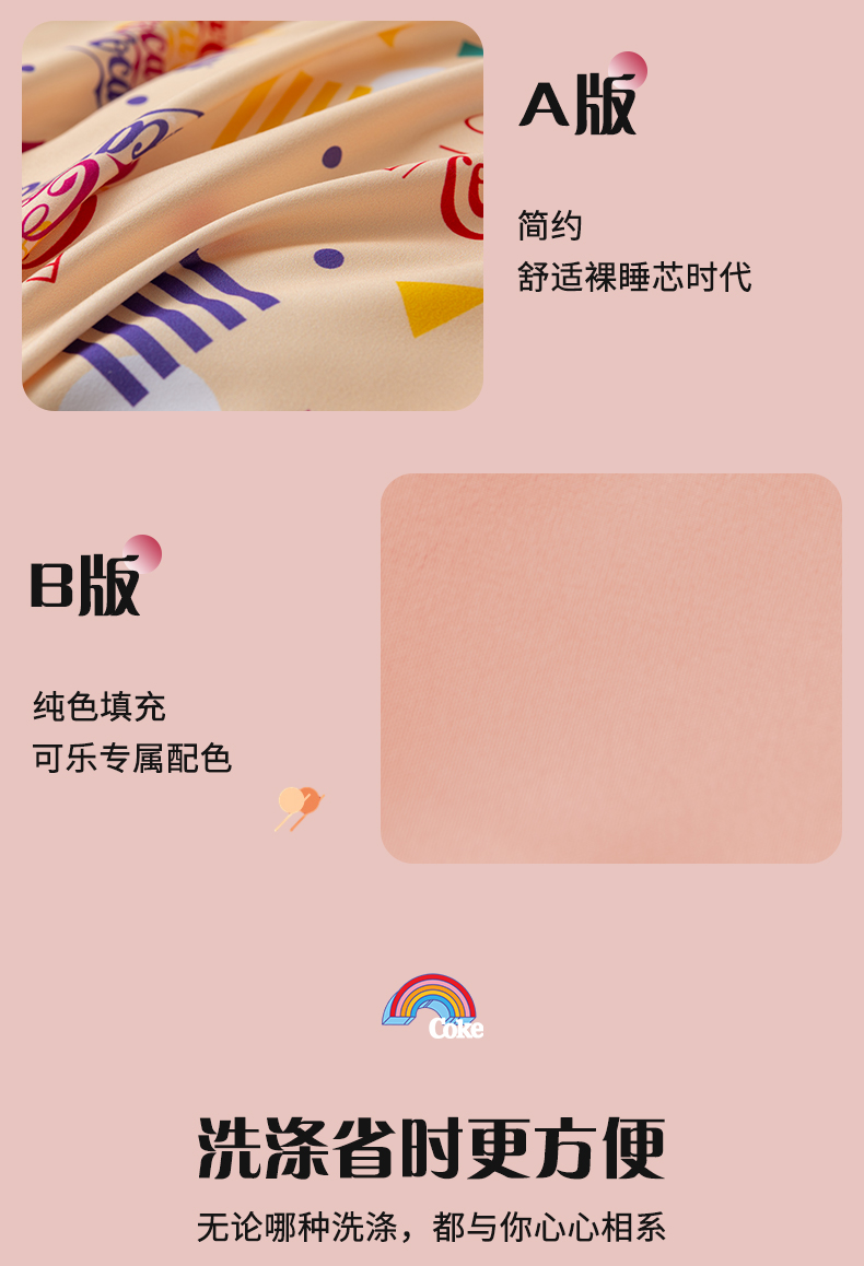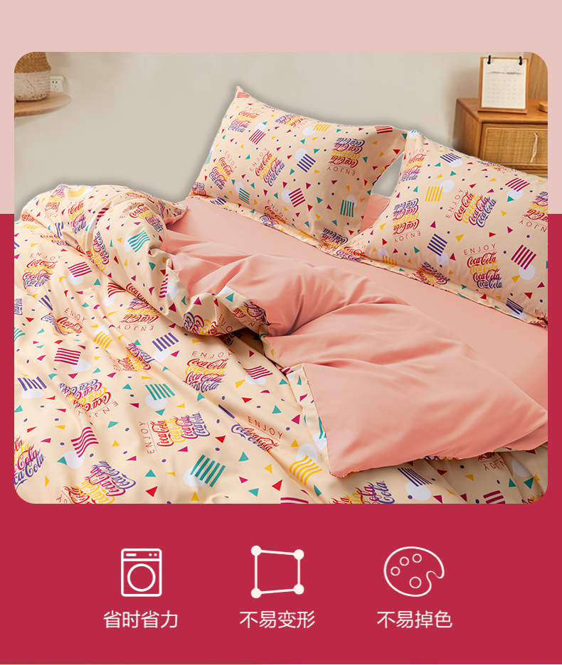 商品名称:可口可乐彩色系列双面四件套200*230cm