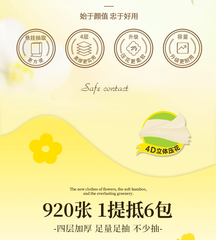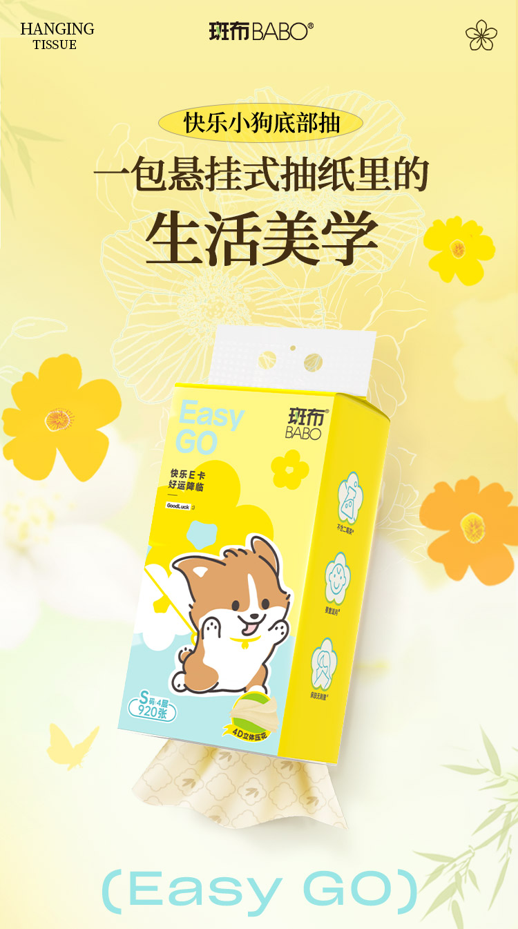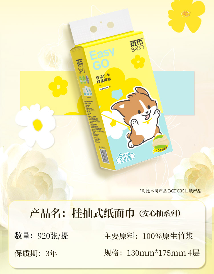 商品名称:BABO/斑布安心抽系列挂抽式纸面巾4层230抽*4提 S码DBXR230G4S-T