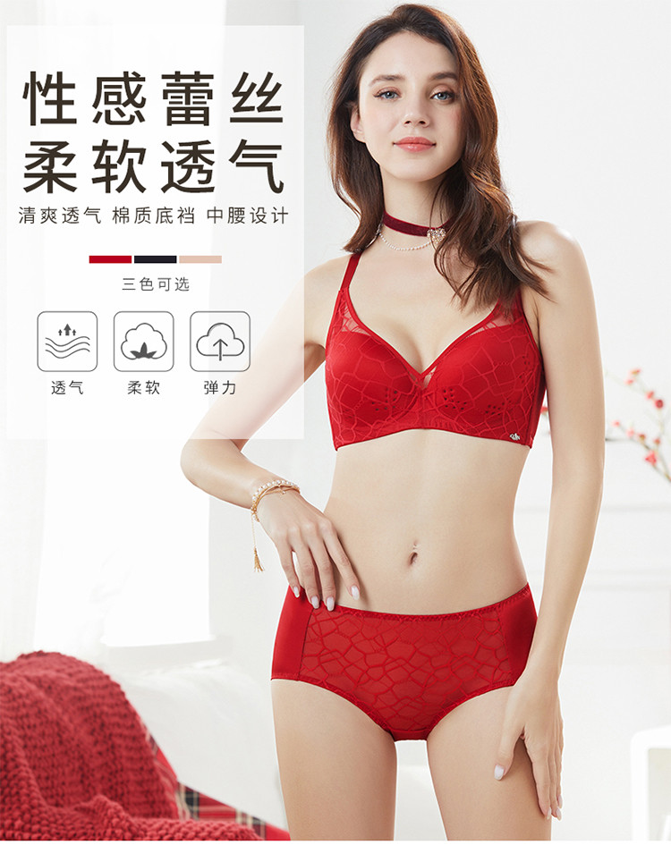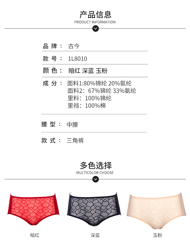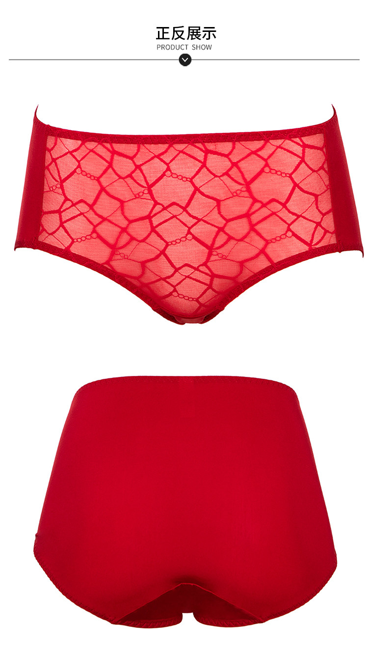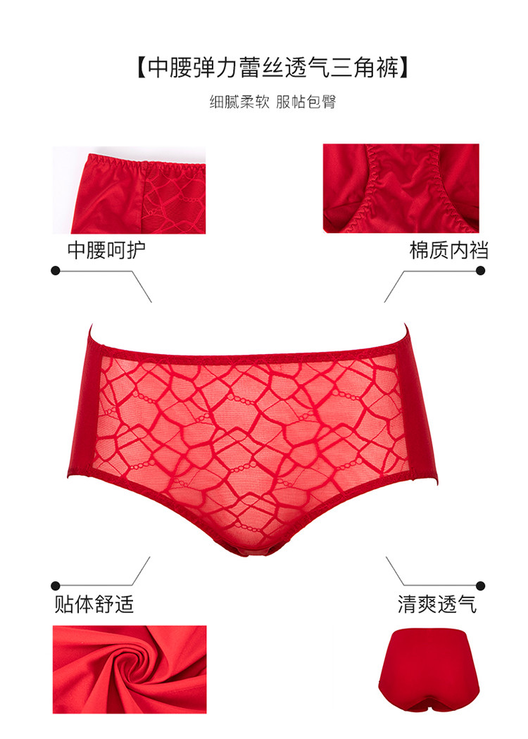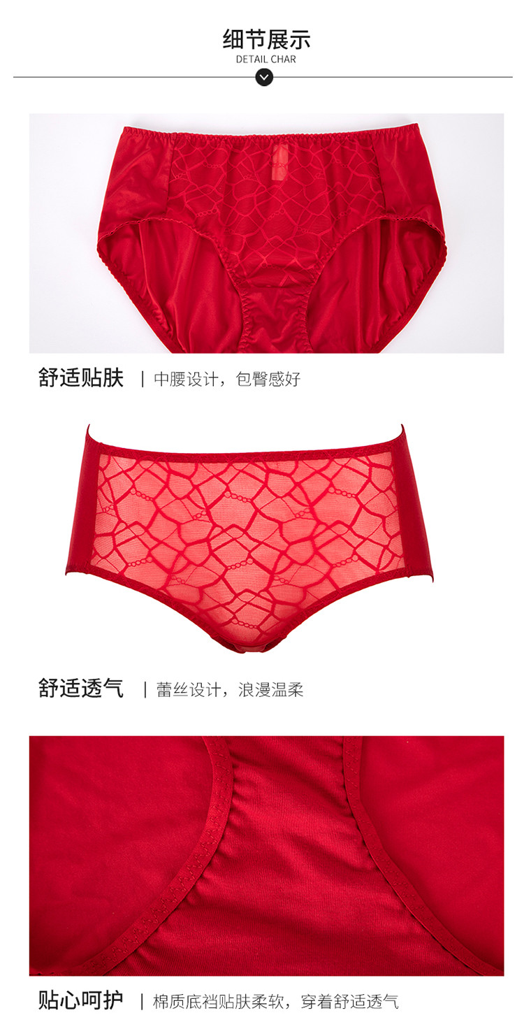 商品名称:【100%纯棉里档】古今大红色内衣舒适透气棉质中腰三角裤网纱 359883