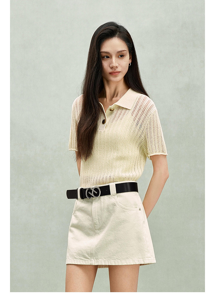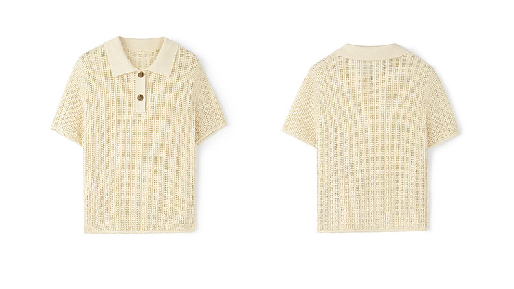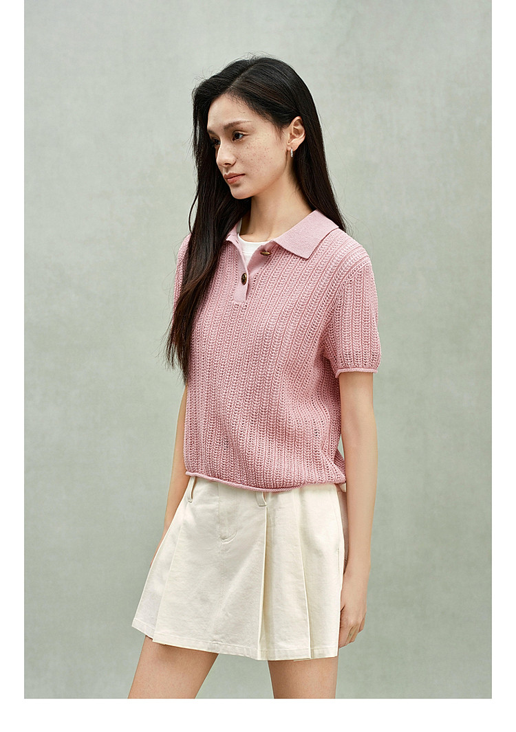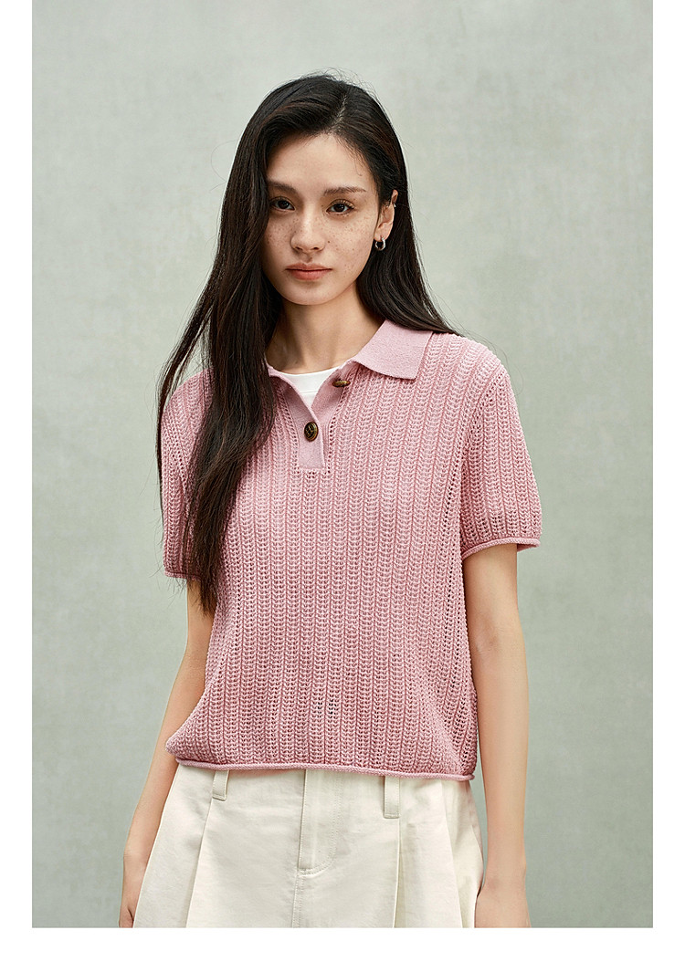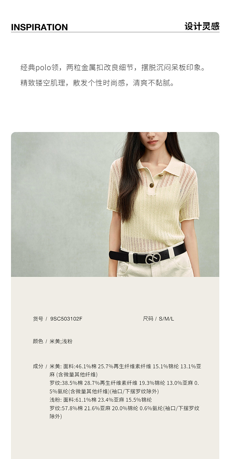 商品名称:限定系列OCH.春装 亚麻混纺镂空上衣polo领短袖针织衫女 100815