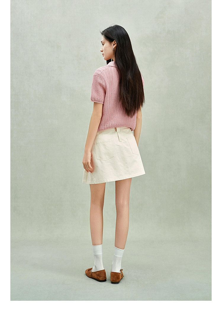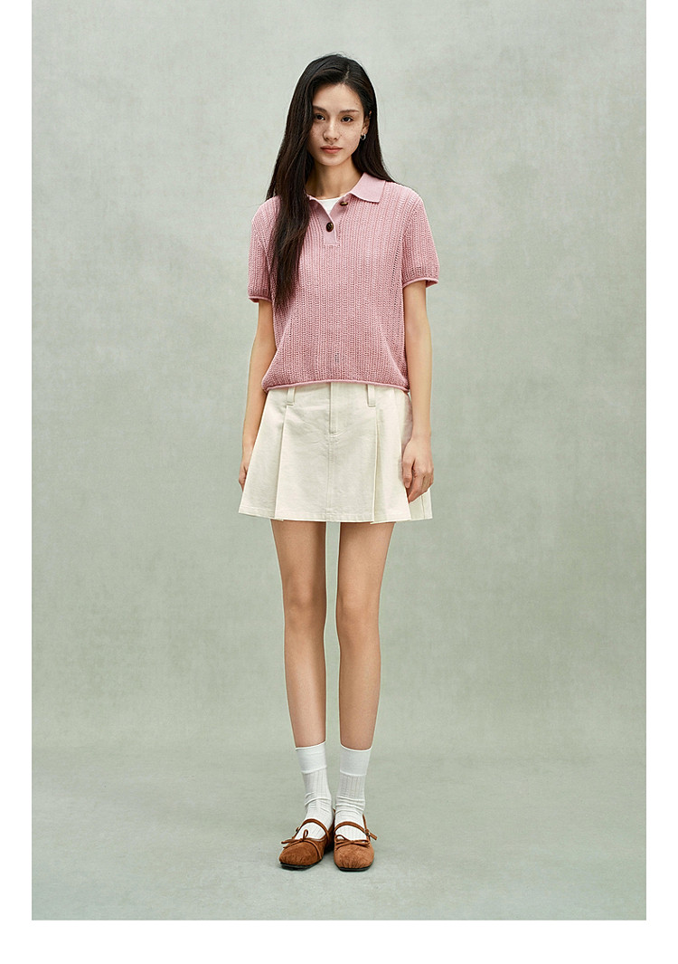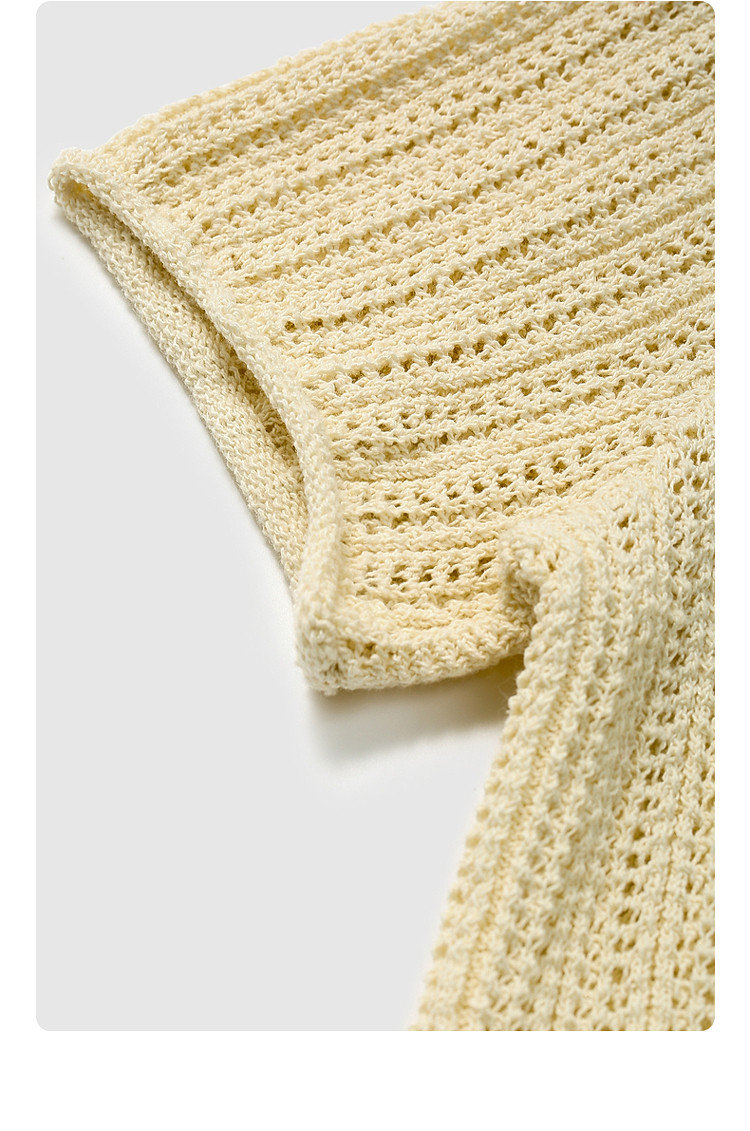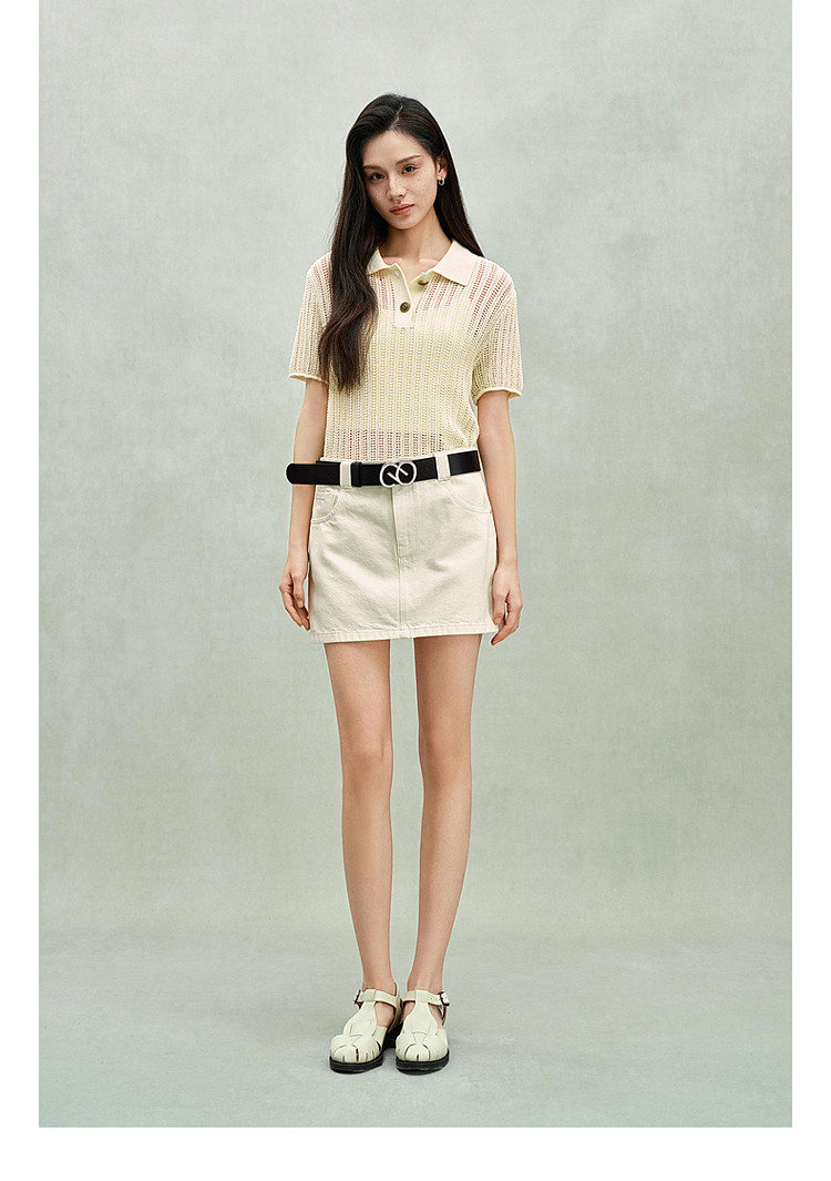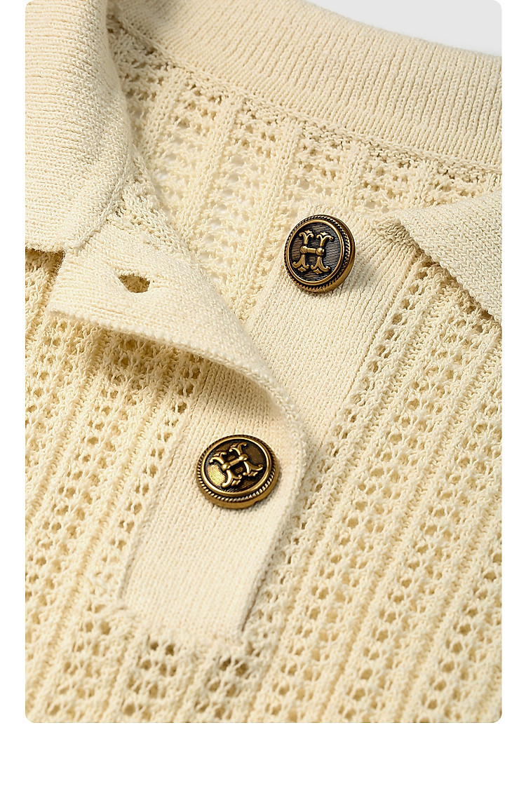 商品名称:限定系列OCH.春装 亚麻混纺镂空上衣polo领短袖针织衫女 100815