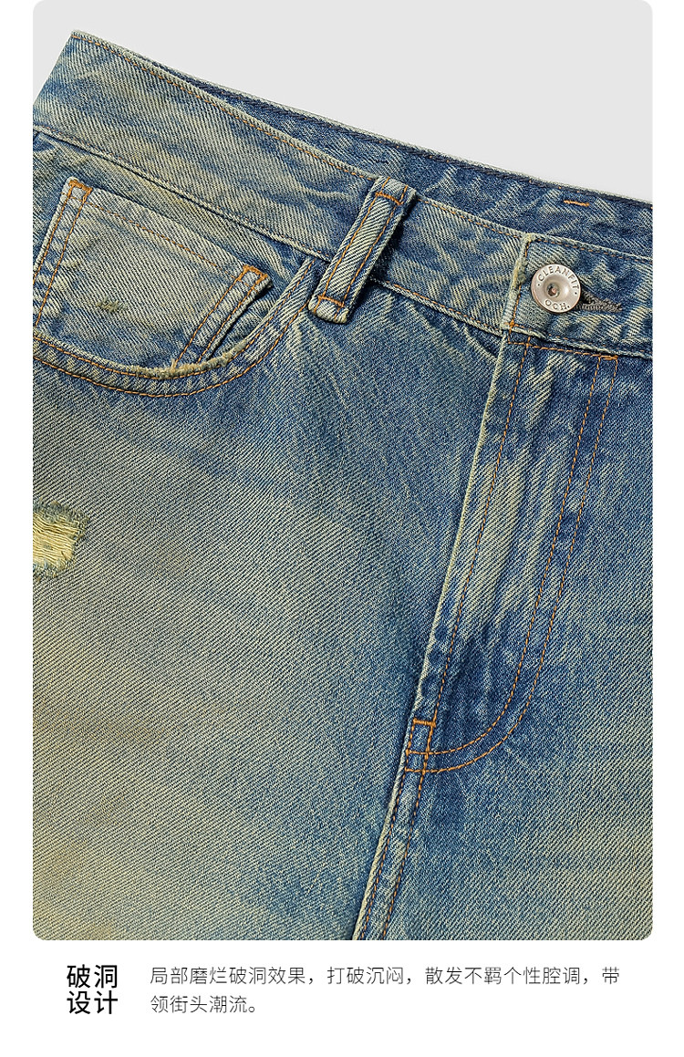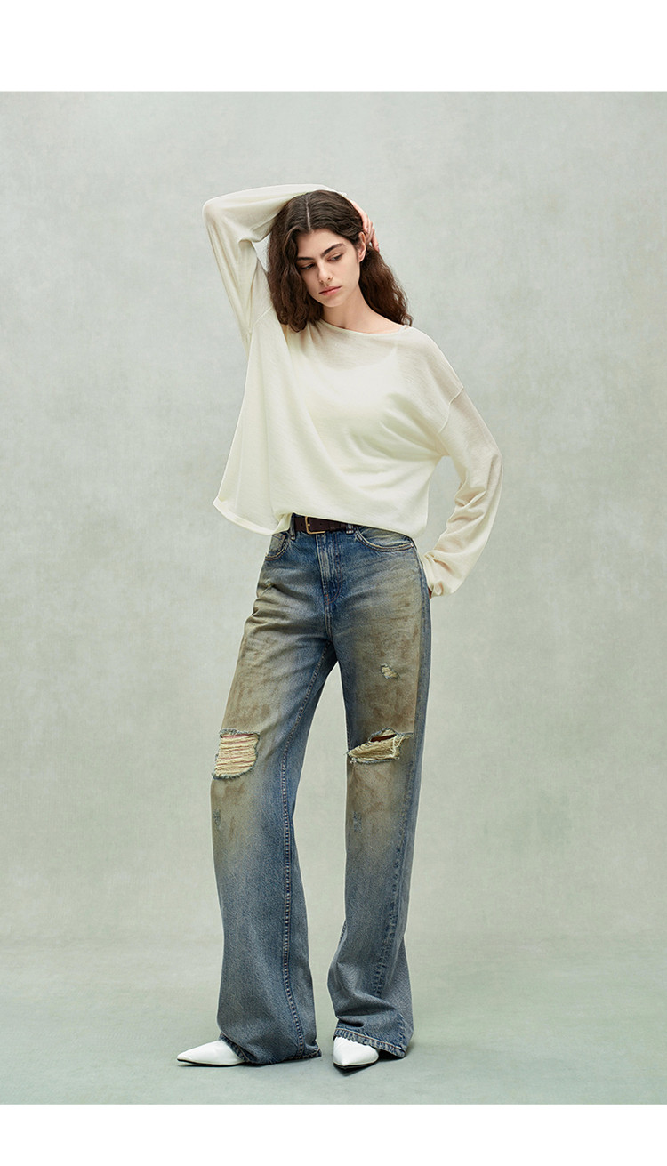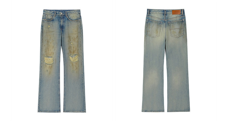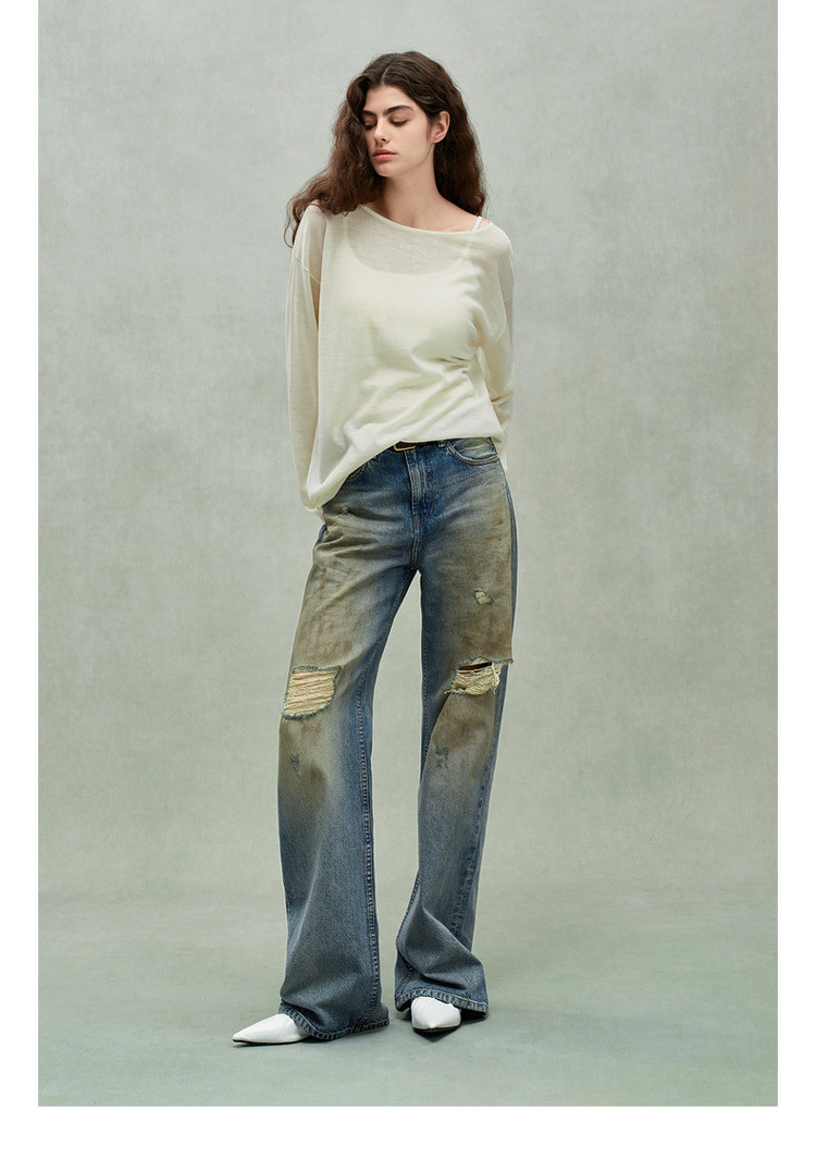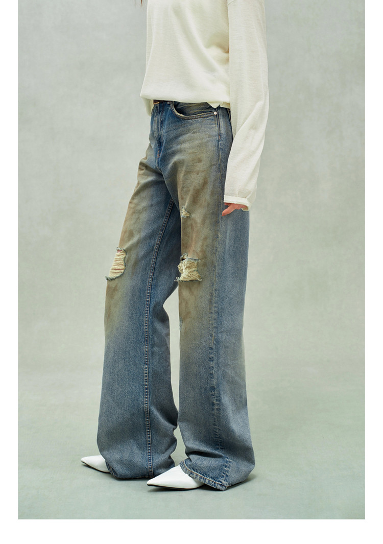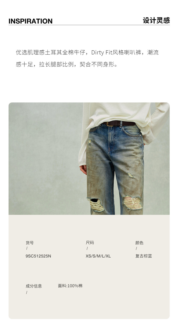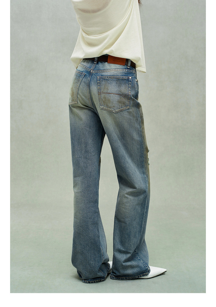 限定系列OCH.春装 破洞脏脏裤喇叭裤进口牛仔长裤女 434447