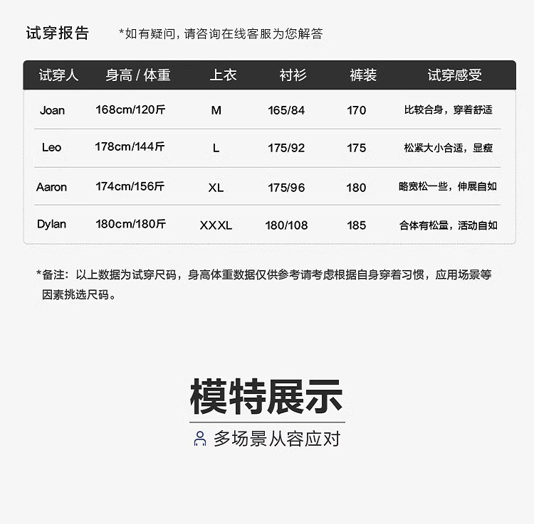 | XL(推荐75~82kg) | 73.5 | 46.4 | 106 | 23.5 | 111 | 108 | 180/96A |