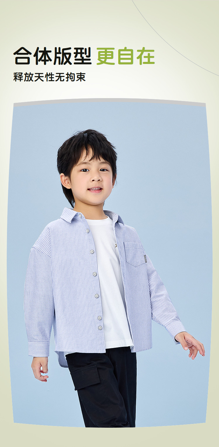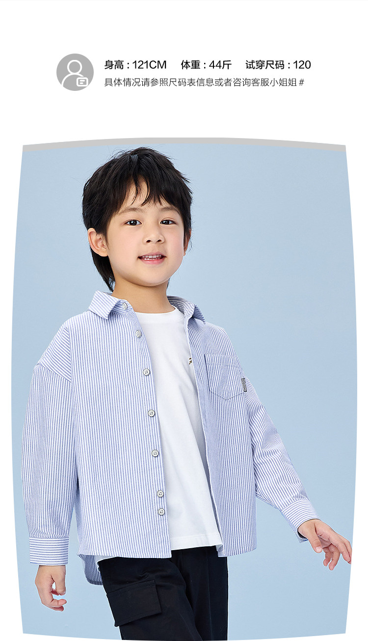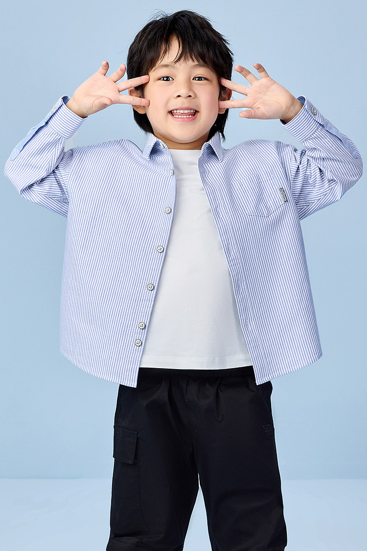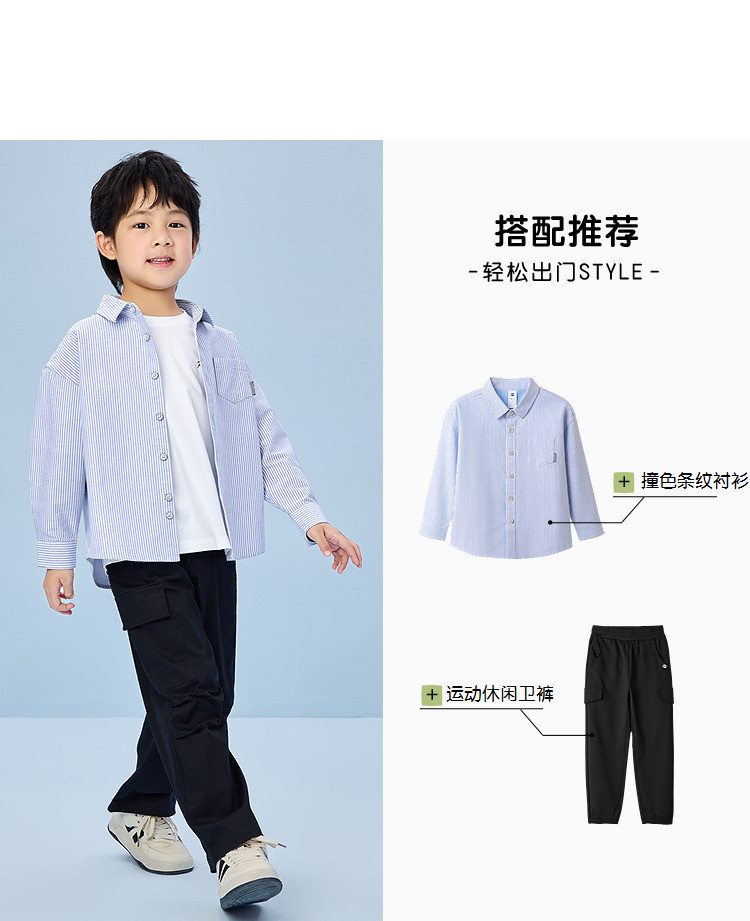商品名称:【童装】25春季撞色条纹柔软百搭纯棉透气上衣男女童长袖衬衫 877768