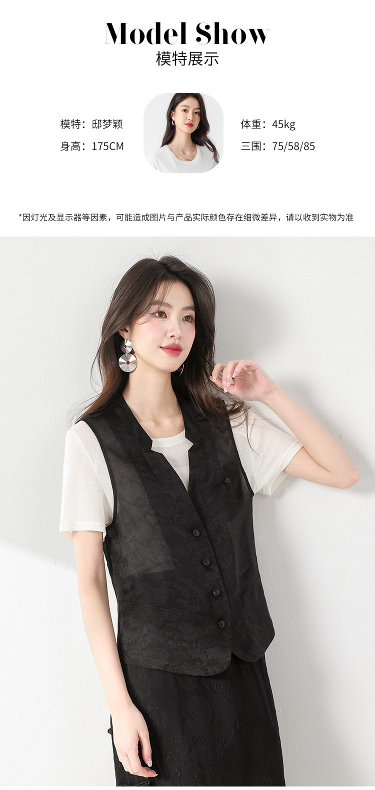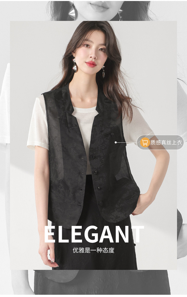 商品名称:【100%桑蚕丝】V领纯色无袖真丝背心马甲坎肩马夹春夏小外套 480851