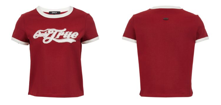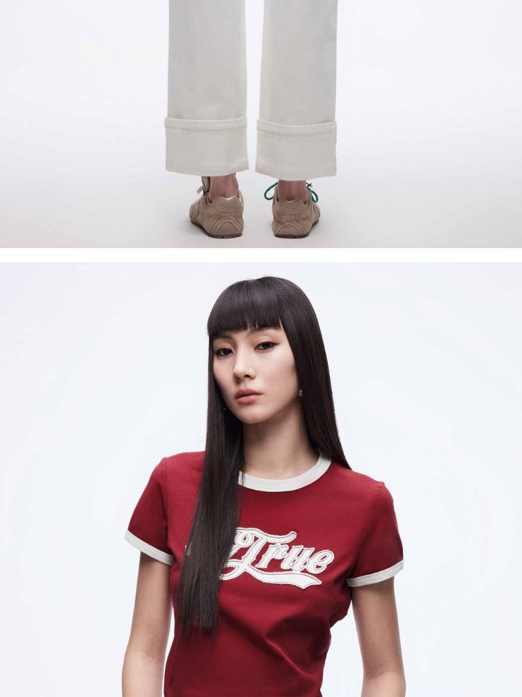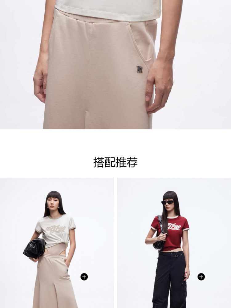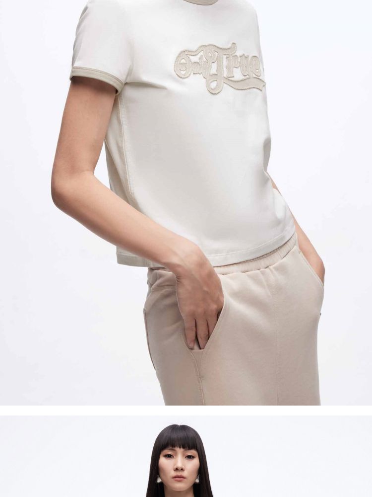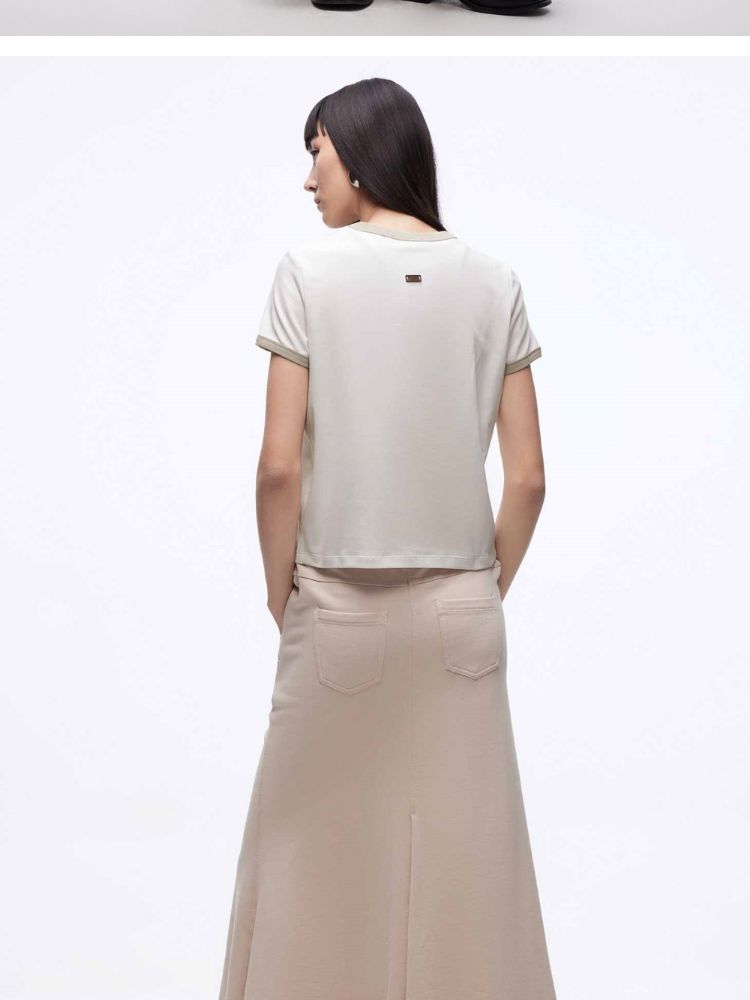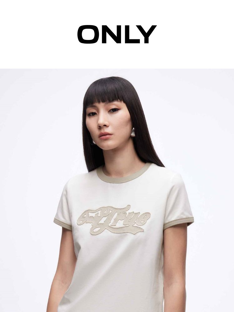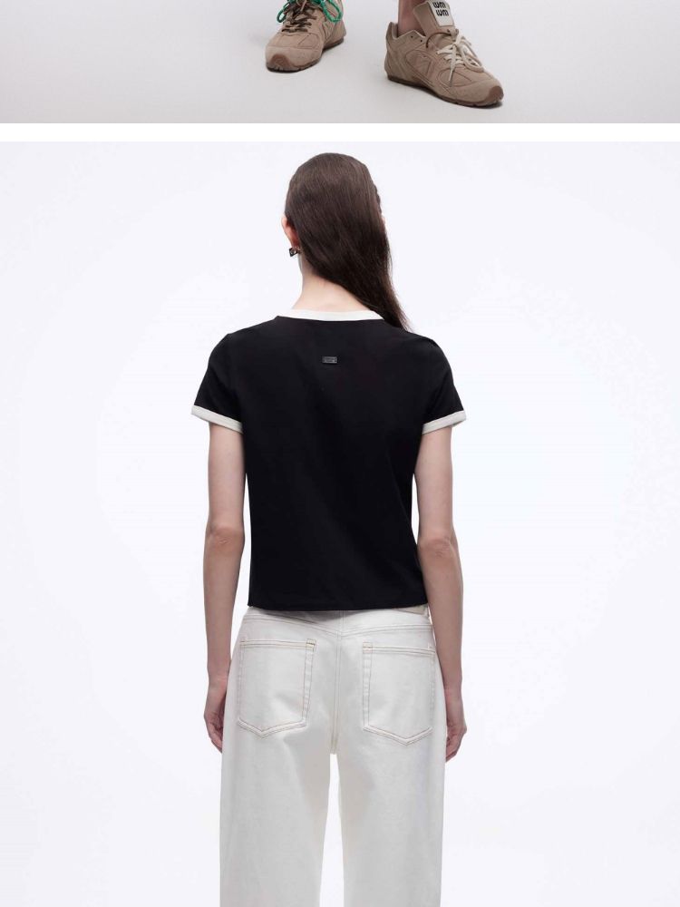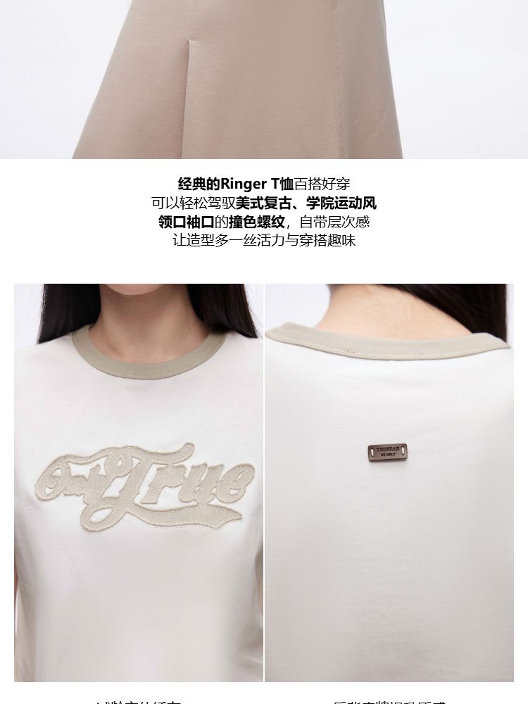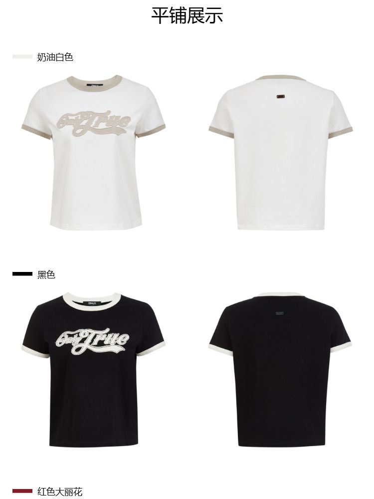 商品名称:【立体绣布】2025春季复古辣妹修身撞色印花正肩短袖T恤女 485402