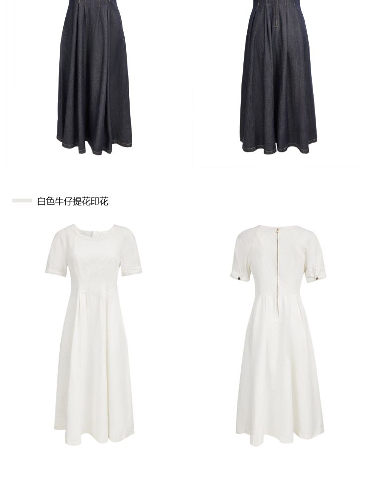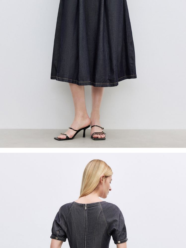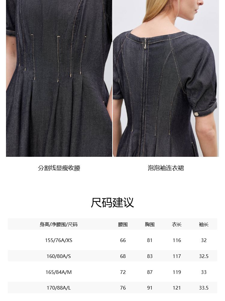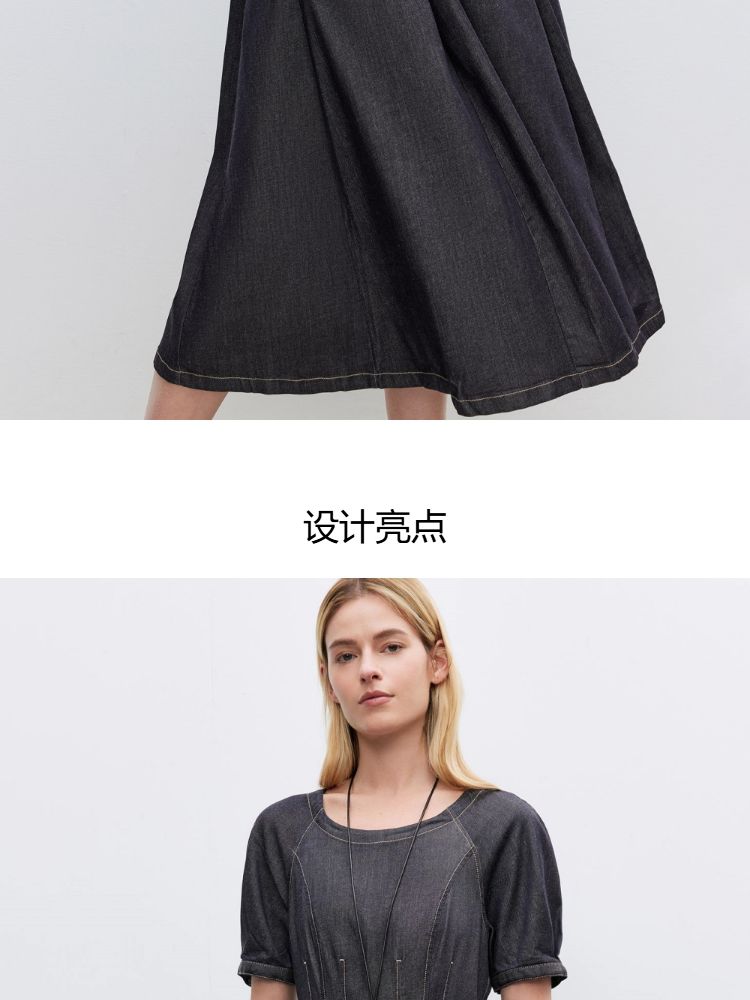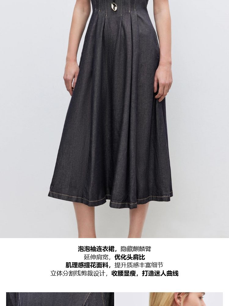 商品名称:【牛仔连衣裙】2025春季纯色伞裙泡泡袖短袖长裙连衣裙女 055066