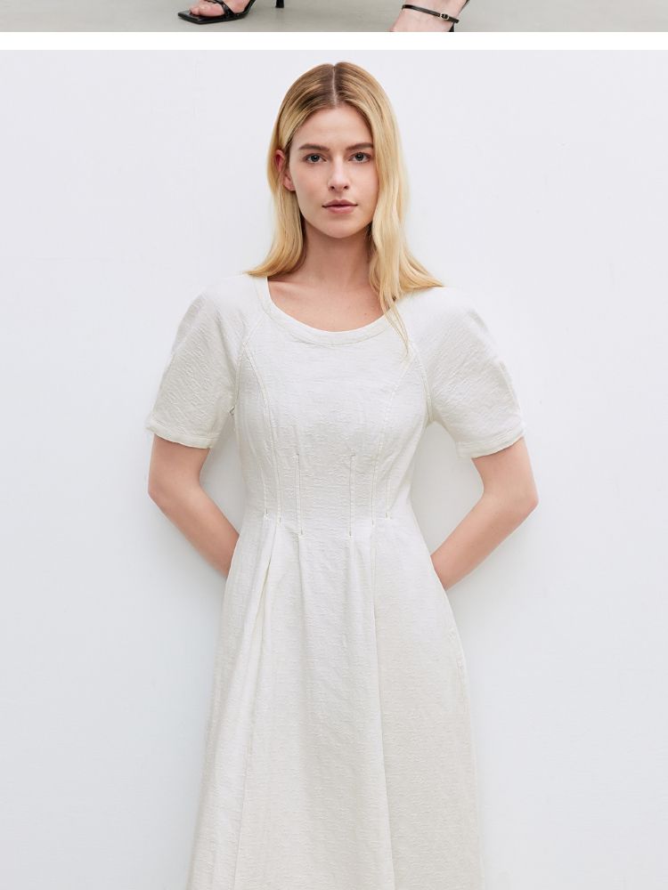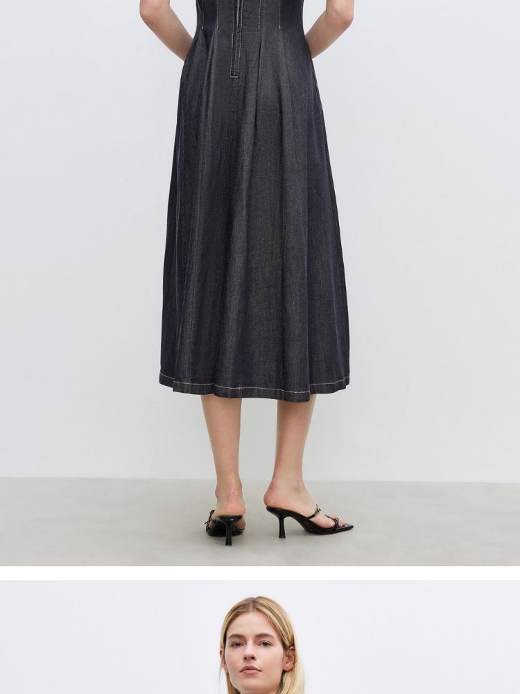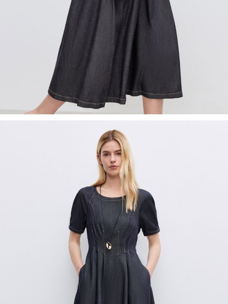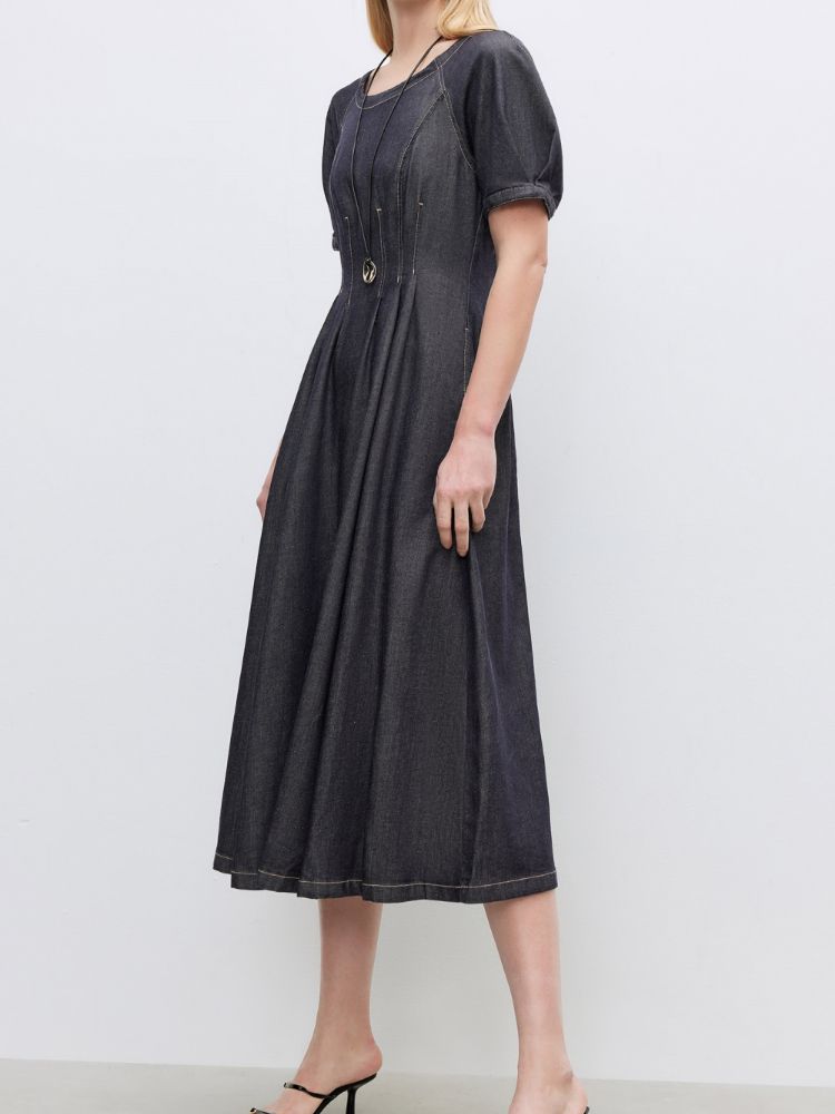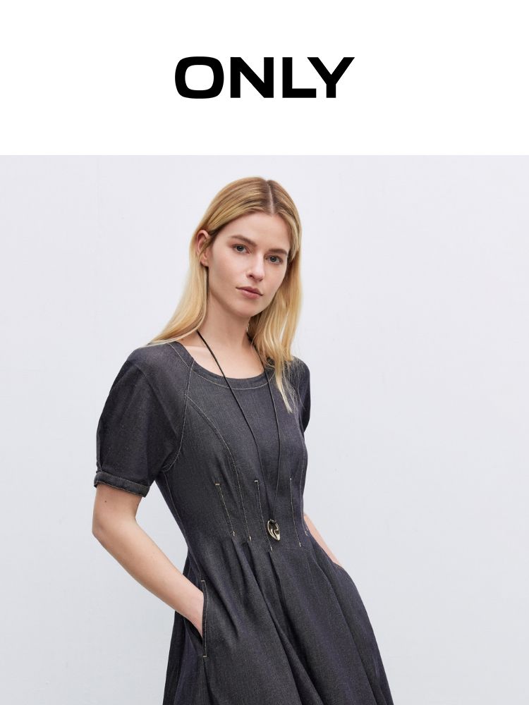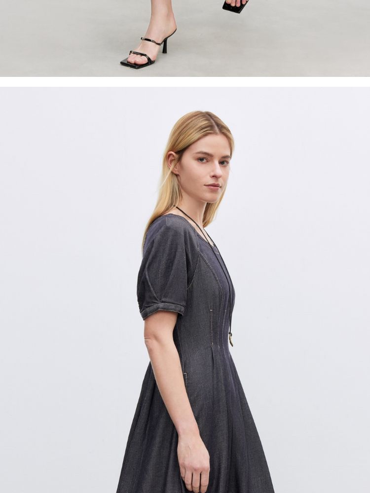 商品名称:【牛仔连衣裙】2025春季纯色伞裙泡泡袖短袖长裙连衣裙女 055066