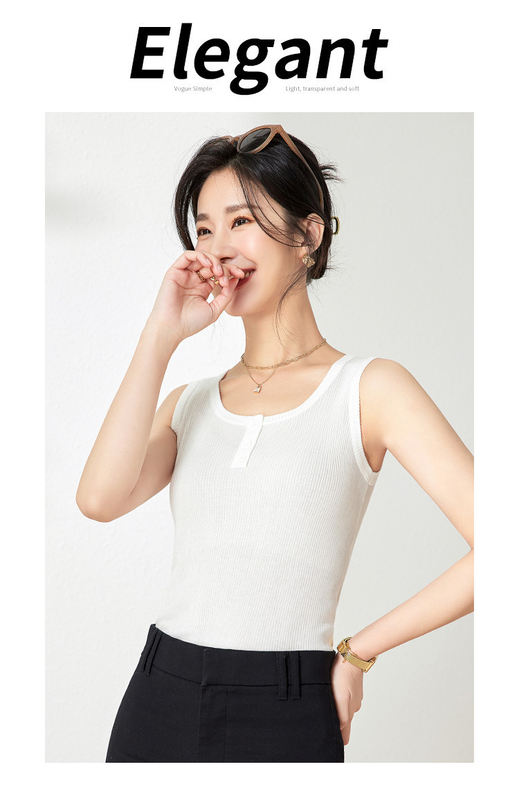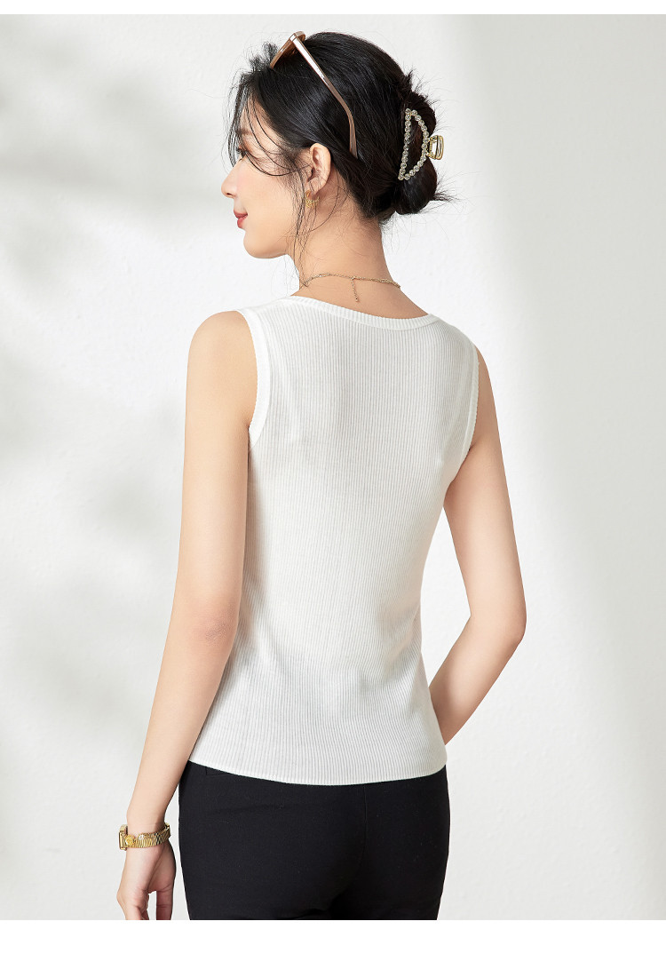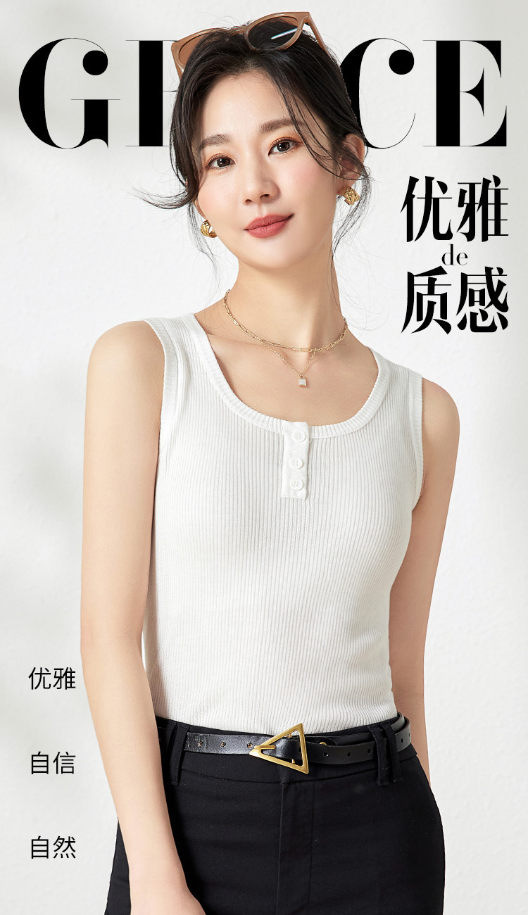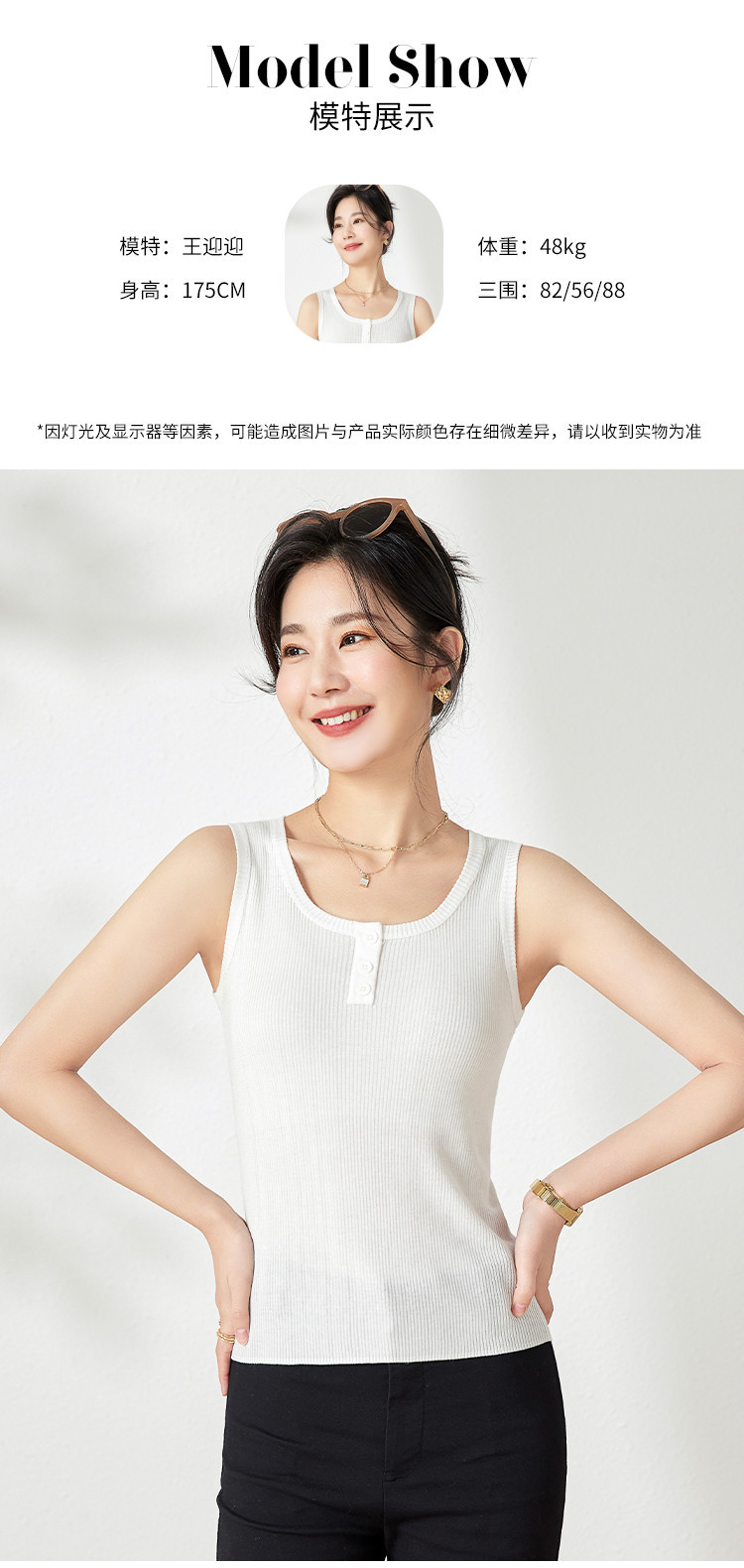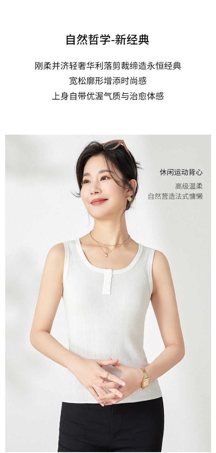 商品名称:轻薄透气纯色纽扣含桑蚕丝针织打底背心马夹坎肩 365843