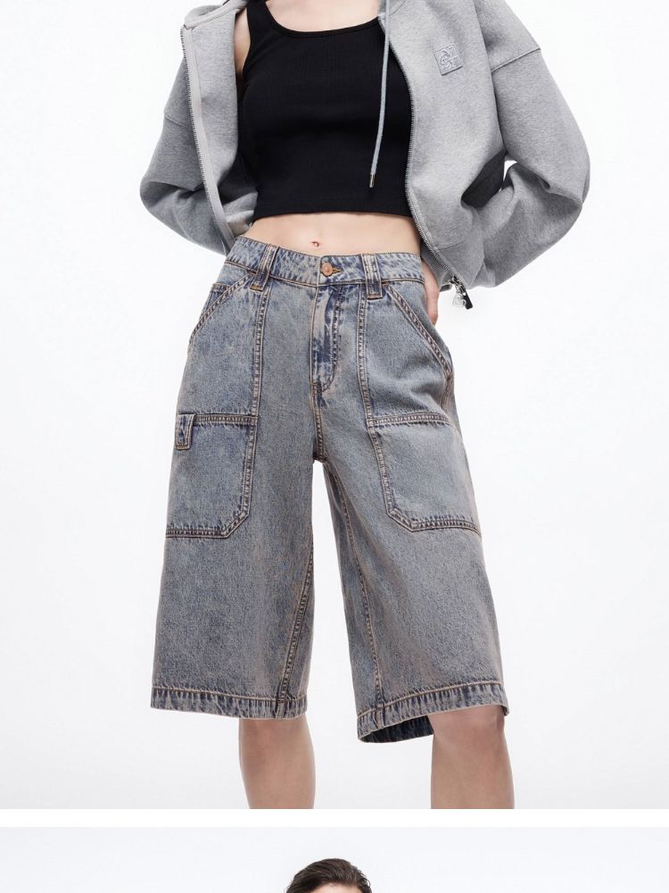 【短裤牛仔裤】25夏季含莱赛尔复古水洗低腰五分裤女 119898