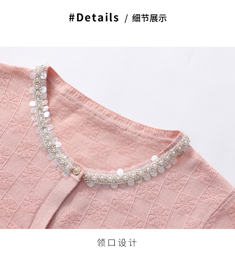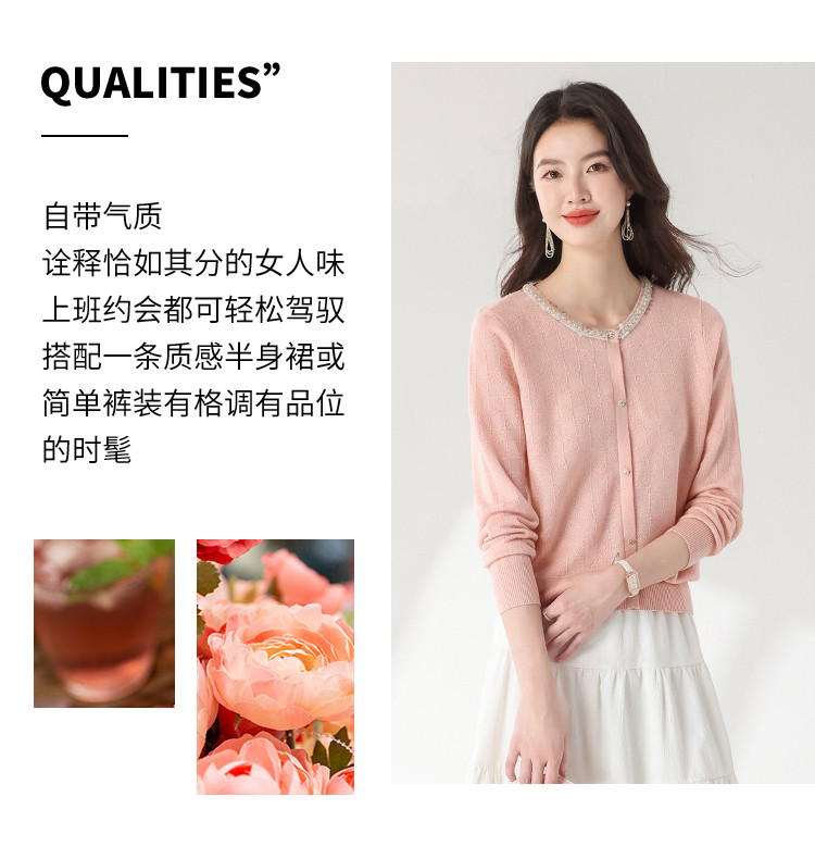 春装 金属链开衫小香风镂空花朵针织外套女 404751