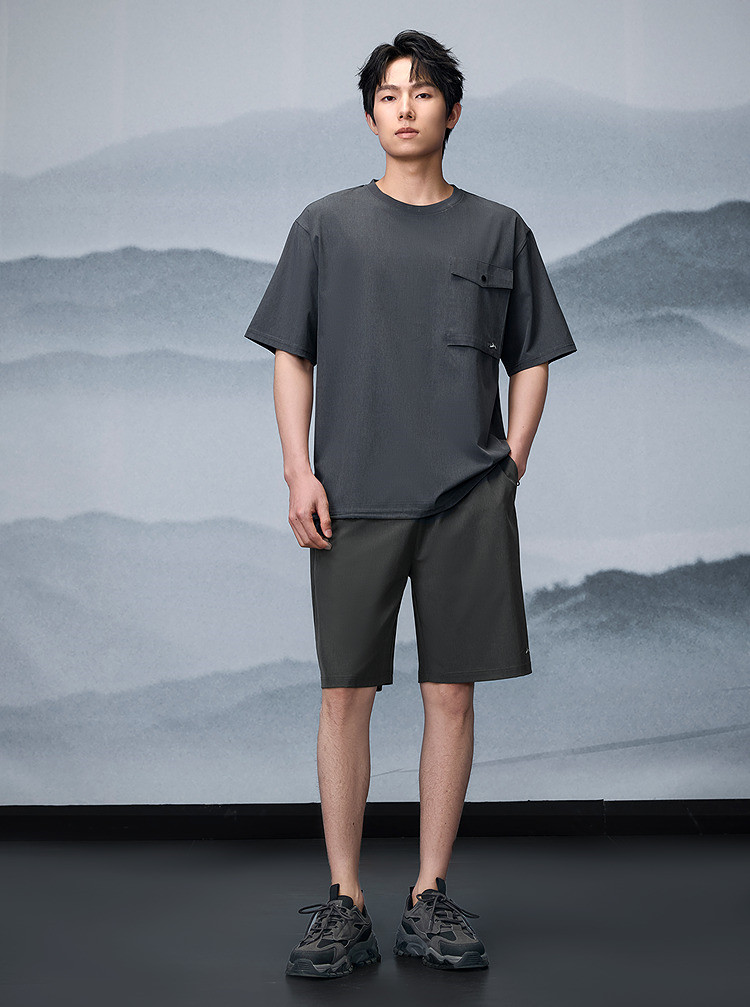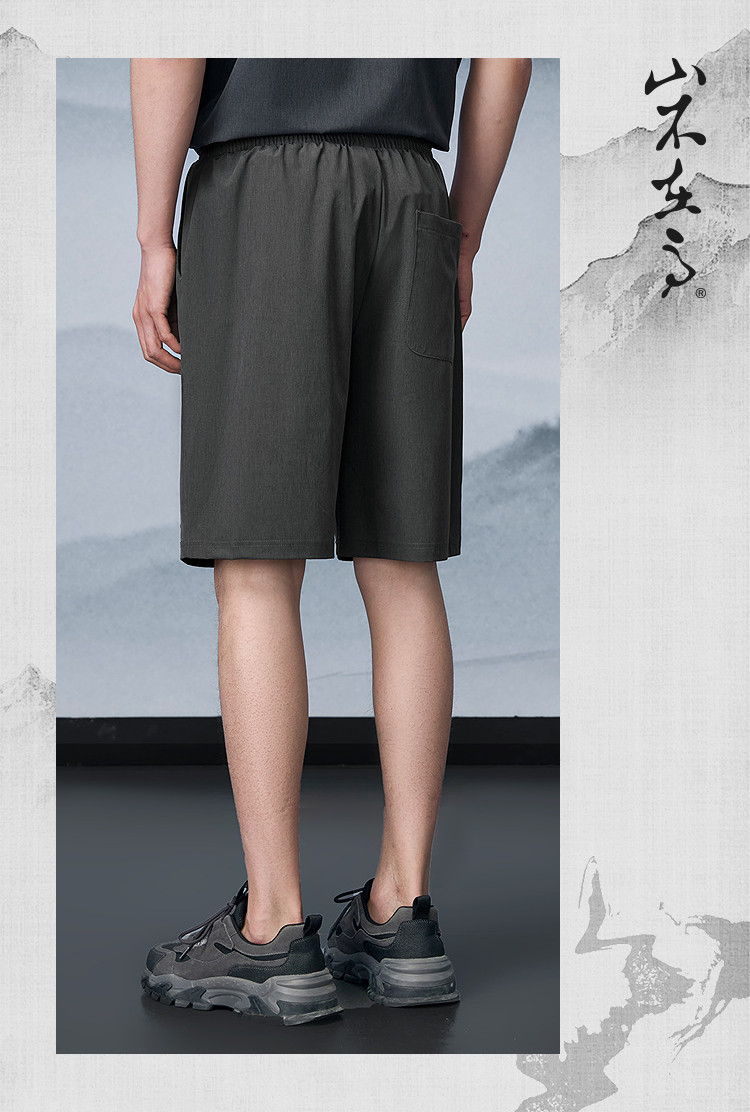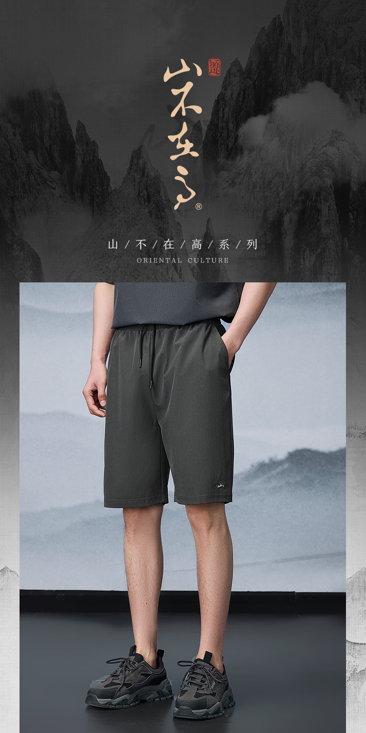 【山不在高】25夏季抽绳系带梭织刺绣休闲男士中裤短裤 590792