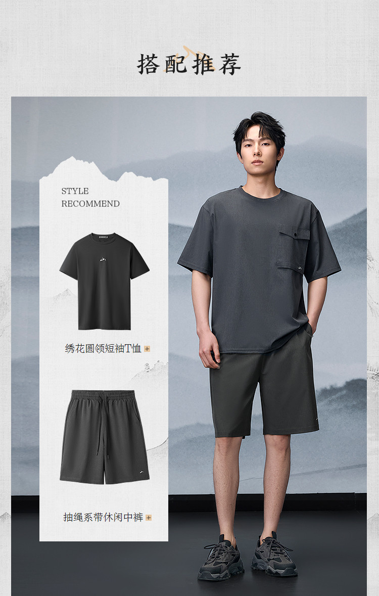 商品名称:【山不在高】25夏季抽绳系带梭织刺绣休闲男士中裤短裤 590792